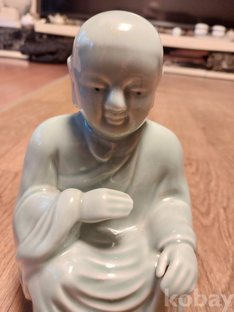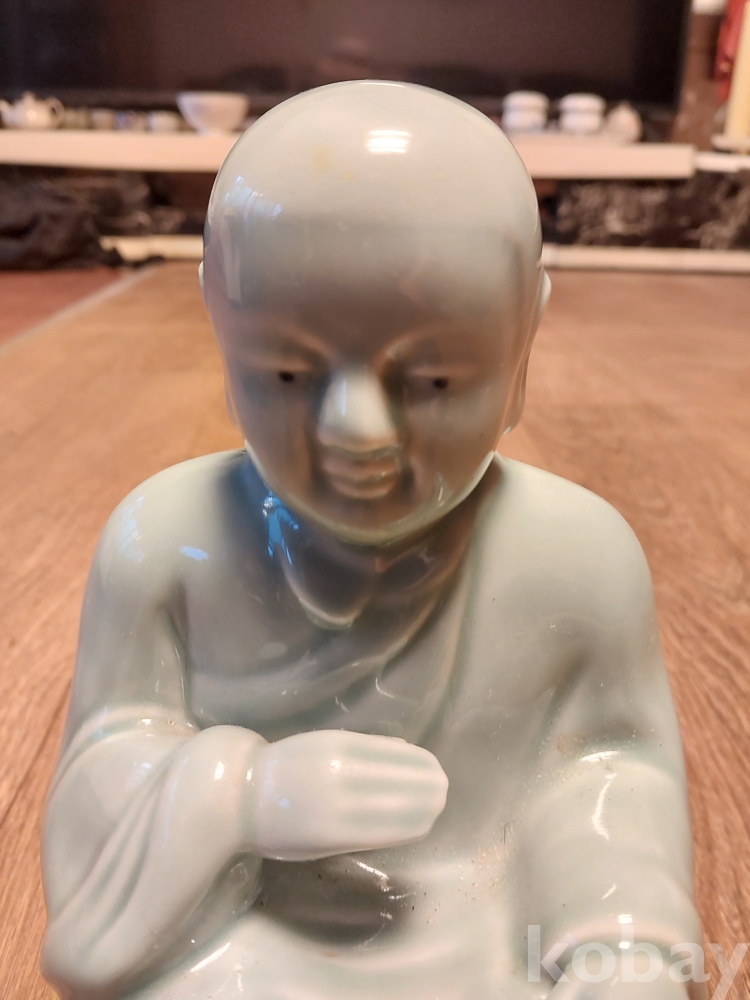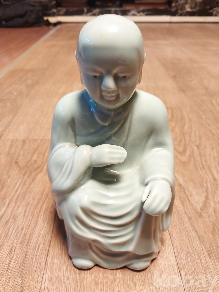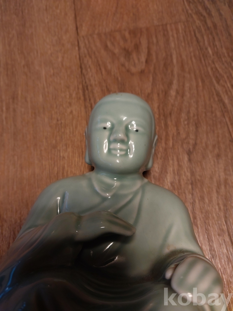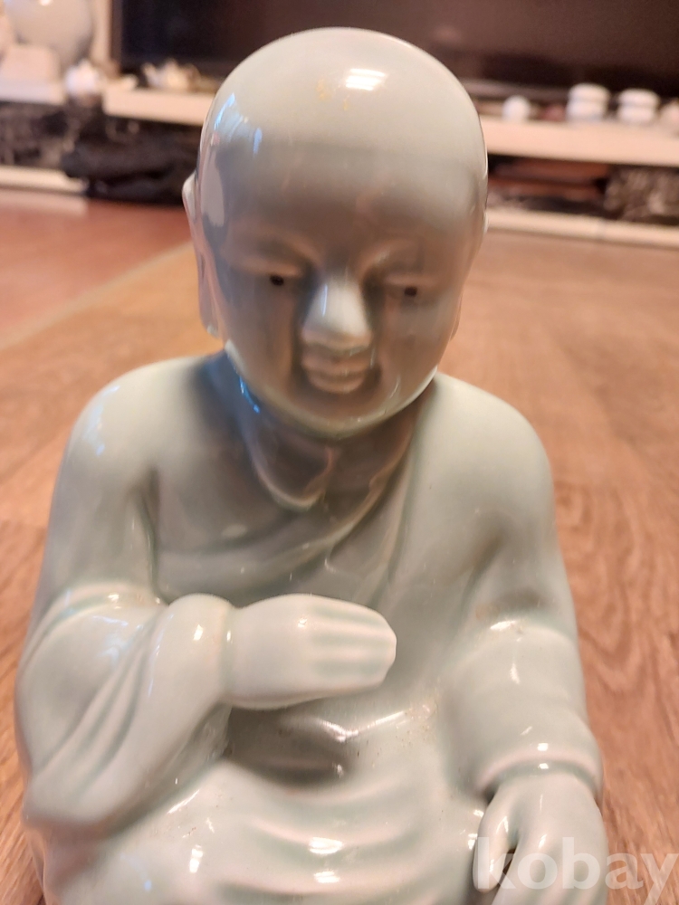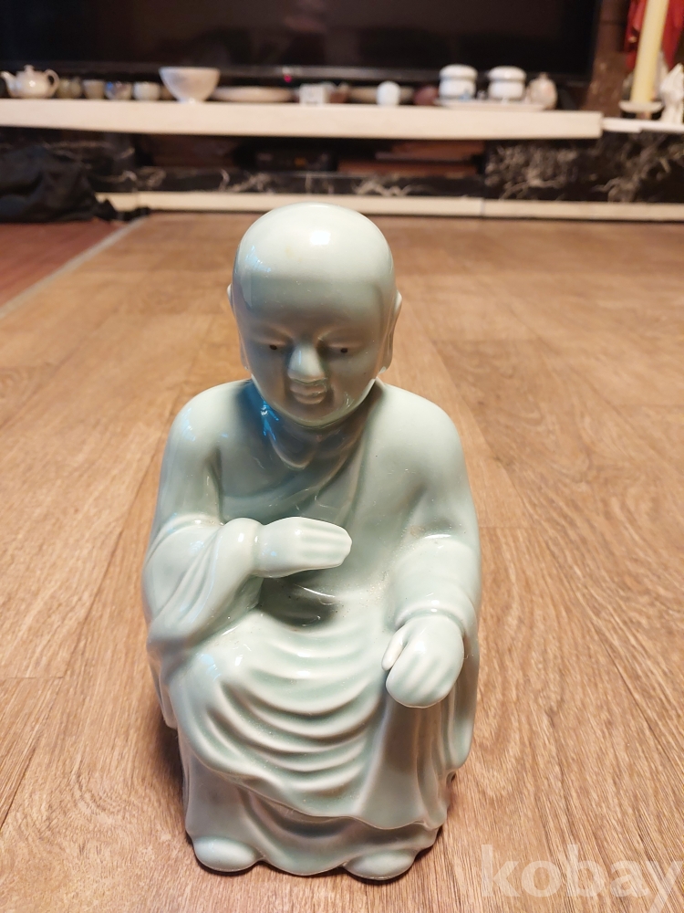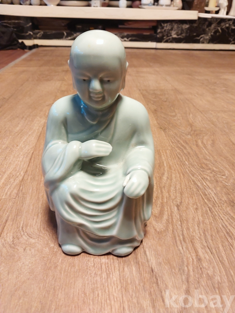 장식성이 좋은 인자한 청자 좌불상 입니다.