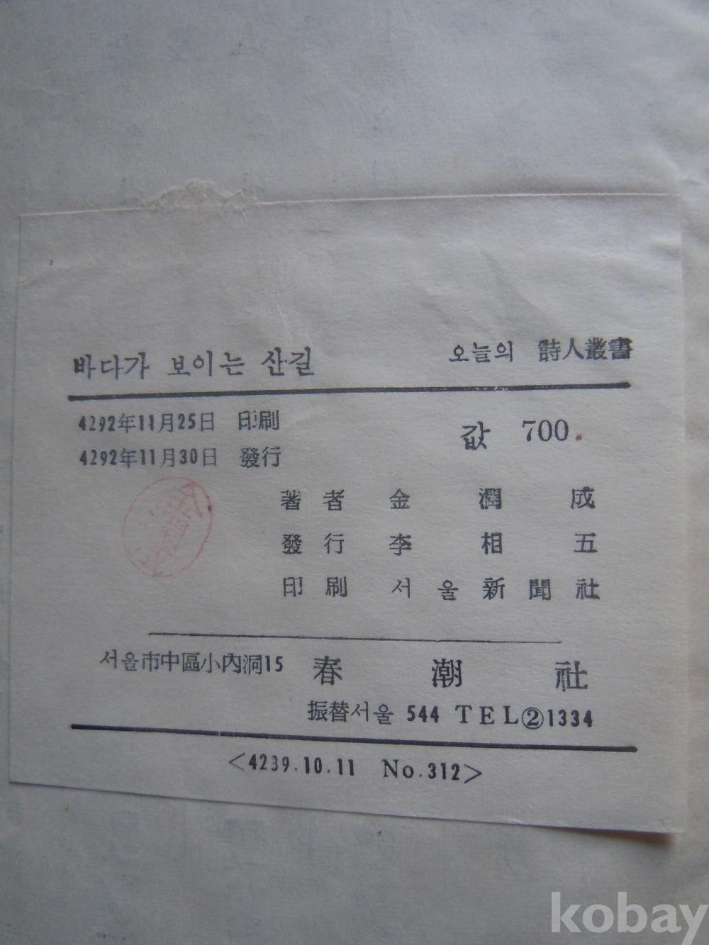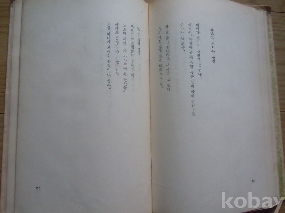 본 시집은 보통은 지질이 누런 갱지에 인쇄했는데, 특별하게 양질의 백지에 인쇄된 희귀한 시집입니다. /