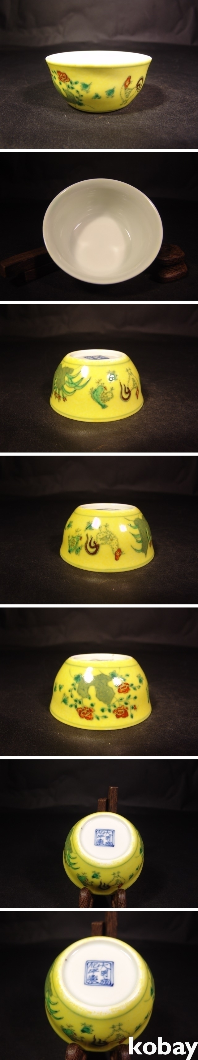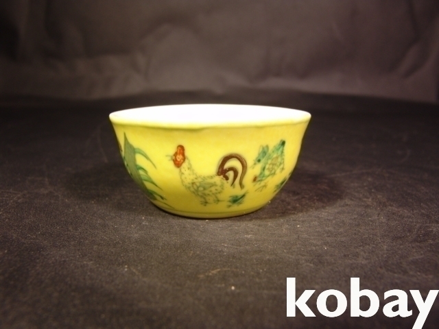 www4122 황지성화두채(黃地成化斗彩) 화계문잔(花鷄紋盞)