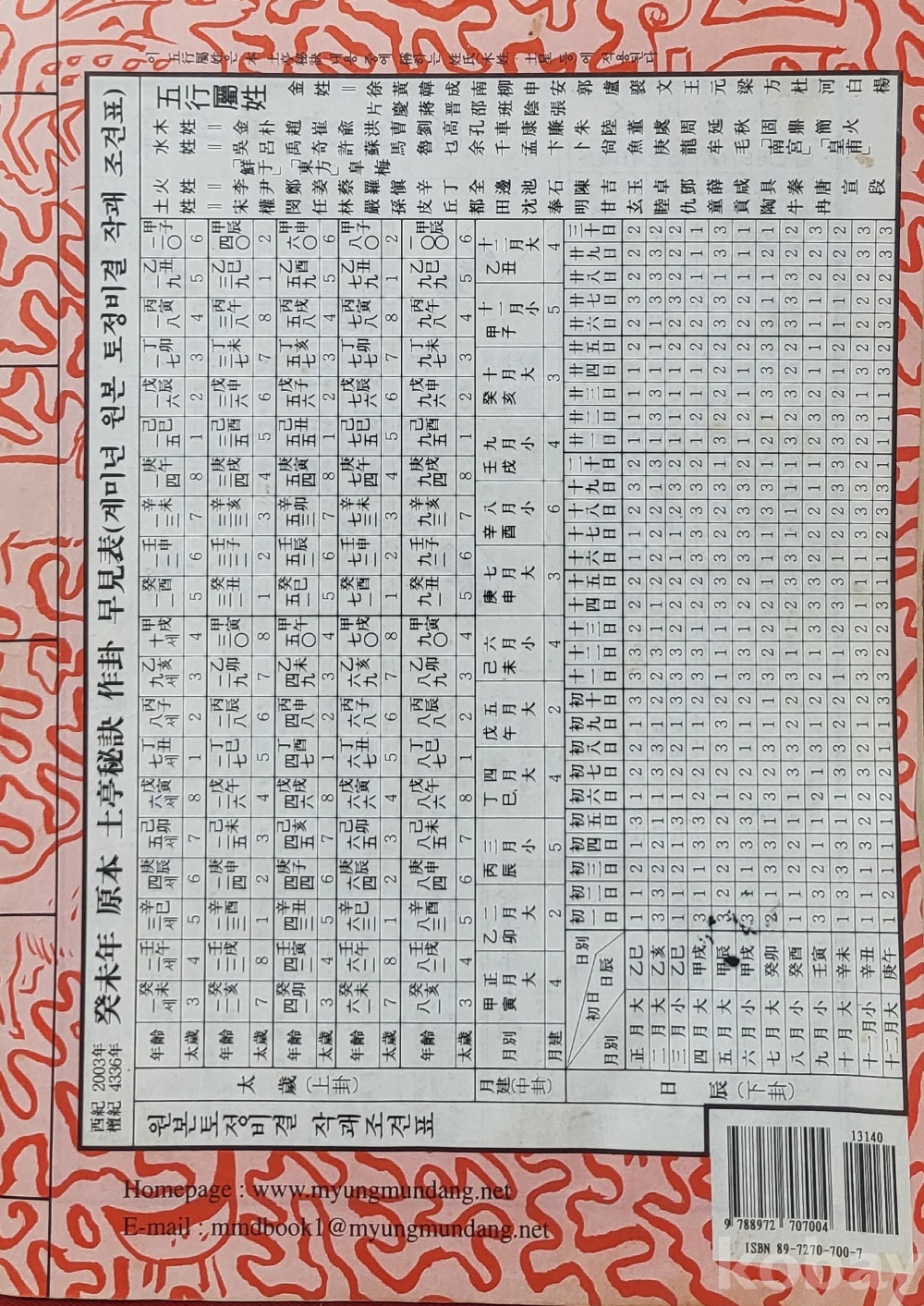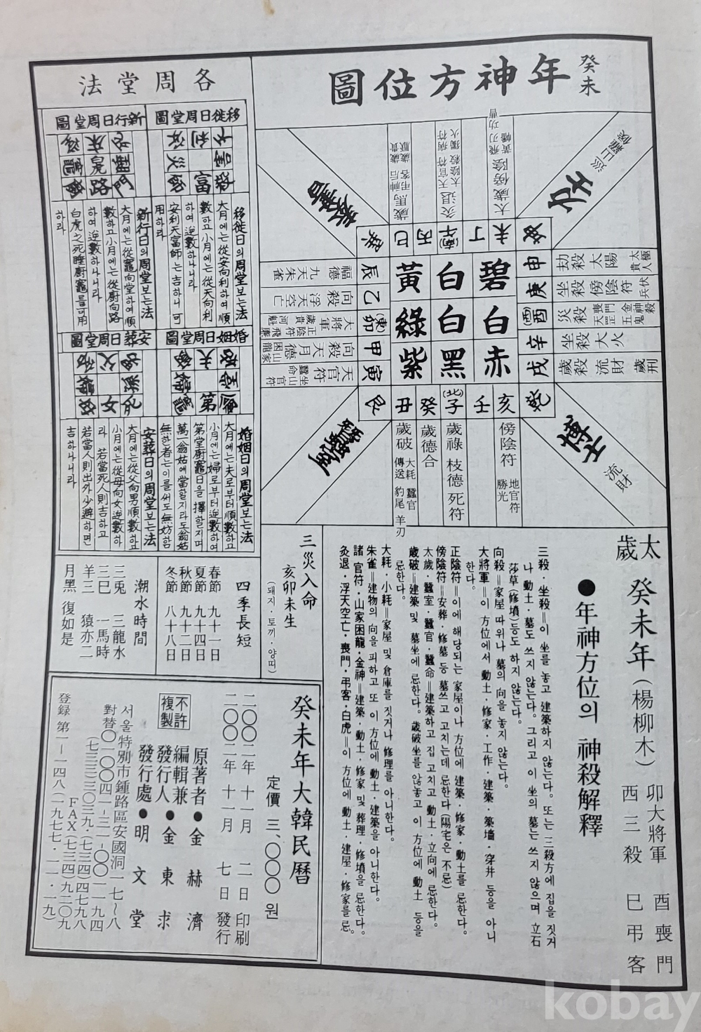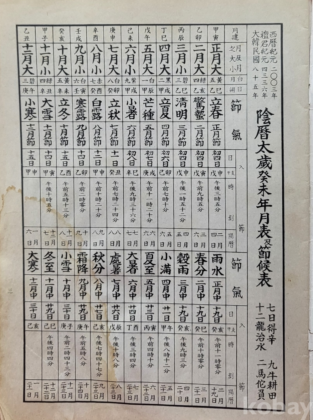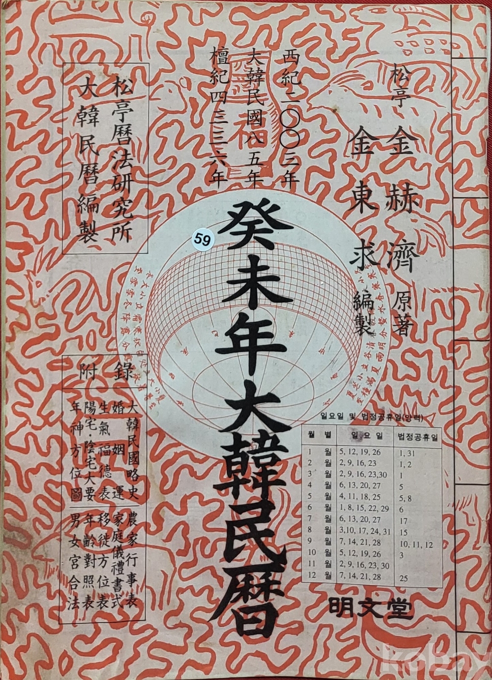 2003 년作 대한역법연구소 편제 신유년 대한민력입니다,