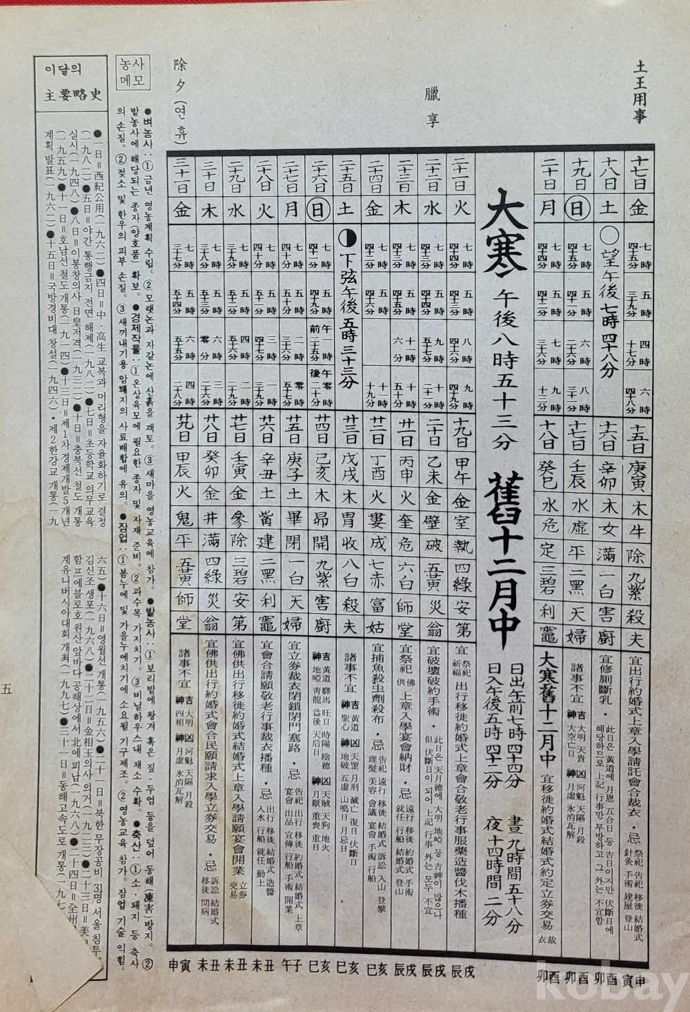 대한민력이라는 민간용 달력책으로 단순한 날자 정보뿐 아니라