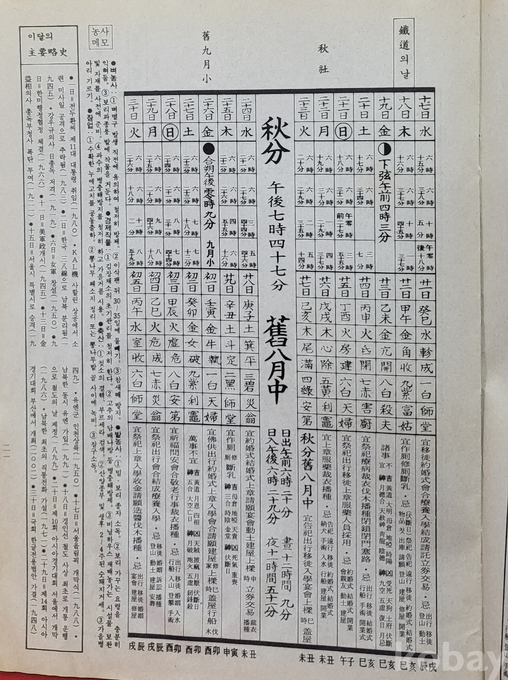 운세 절기 국내외 사건 용약 같은 생활 자료도 함께 수록된 전통식 역서(歷書)입니다,