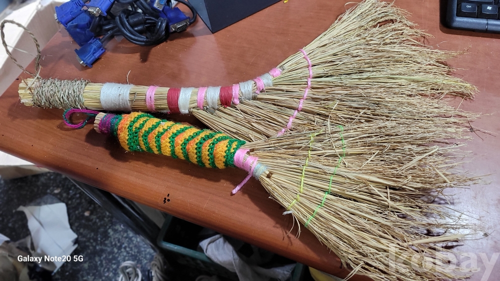 동네 어르신이 만드신 사용가능한 '짚으로 만든 빗자루'입니다.