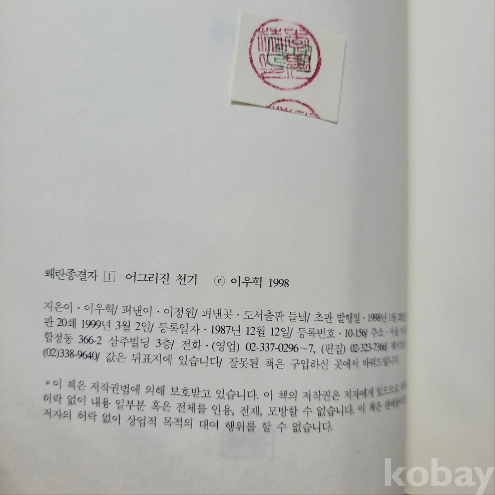 중급 : 표지없음/ 바램/ 필기 낙서/ 직인/ 갈라짐
