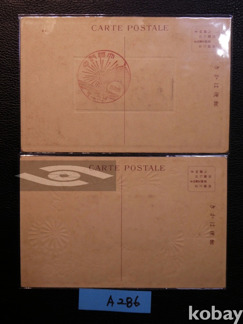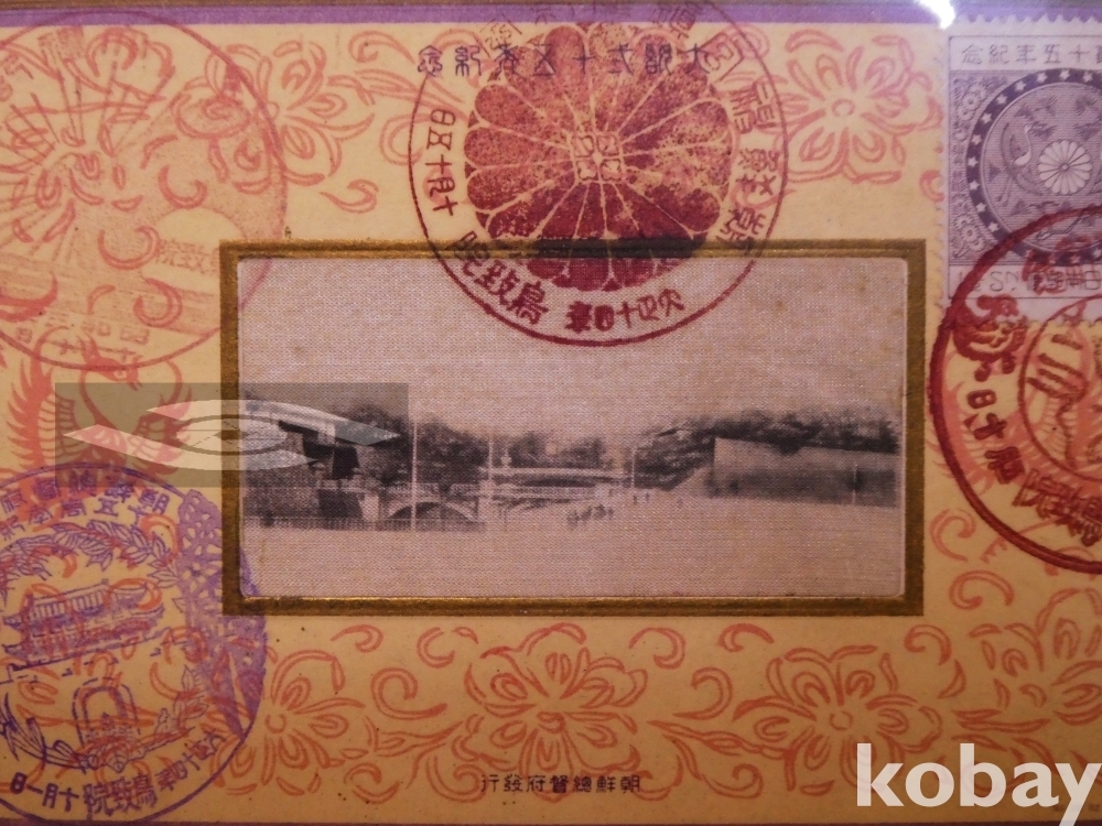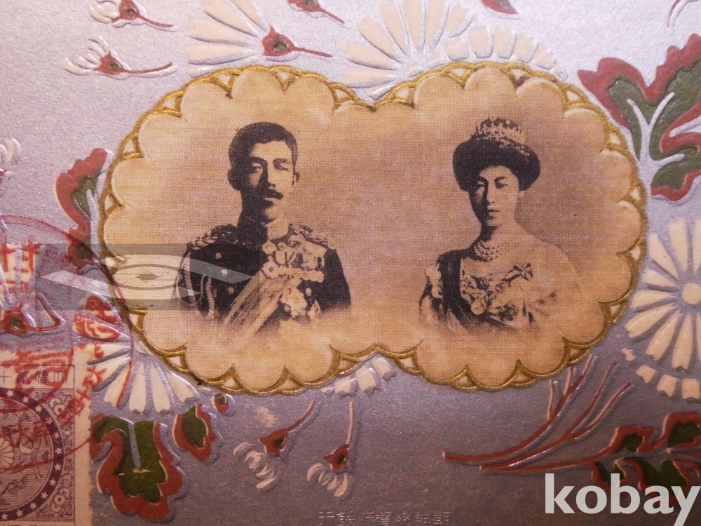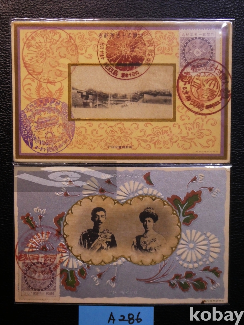 ▣근대한국엽서(진본): 일제강점기 대정천황 혼례 25년 기념 2매 완전 세트. 기념인 날인, 시정 기념인 등등.