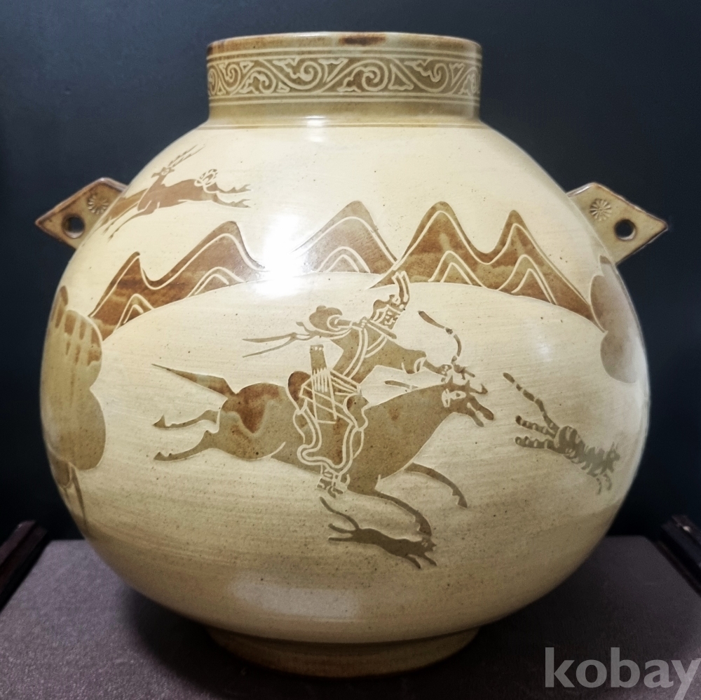 분청양이호수렵도문호 粉靑兩耳壺狩獵圖紋壺 < 도예가 수결 작품 >