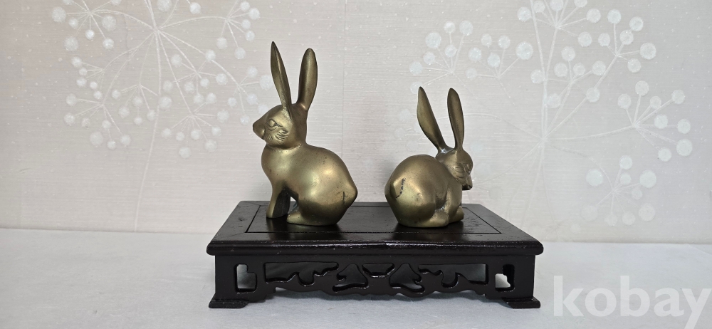 @. 동(브론즈)으로 만든 앙증맞은 토끼 부부,