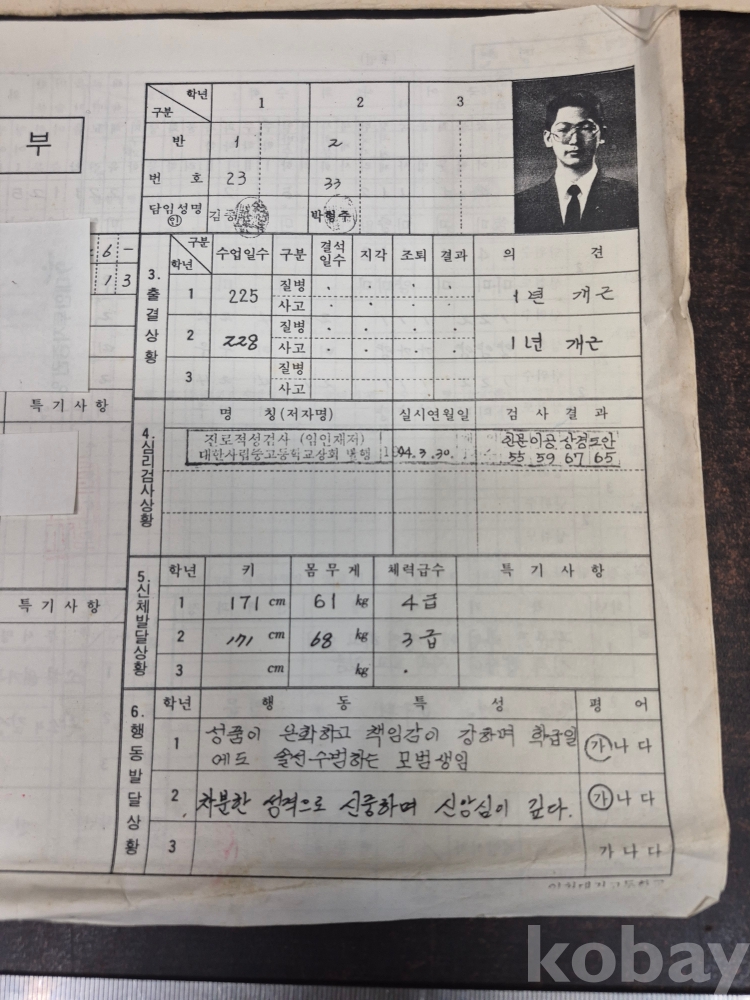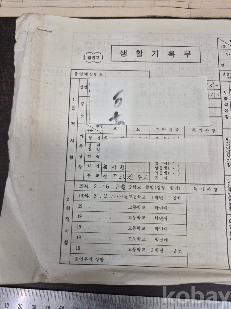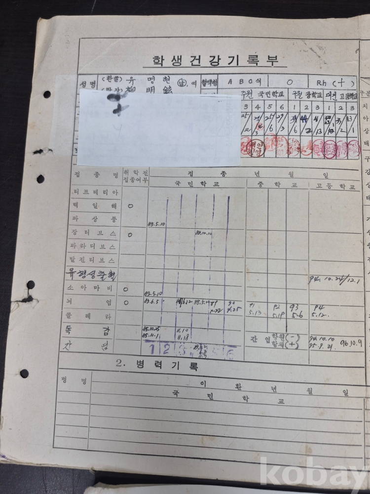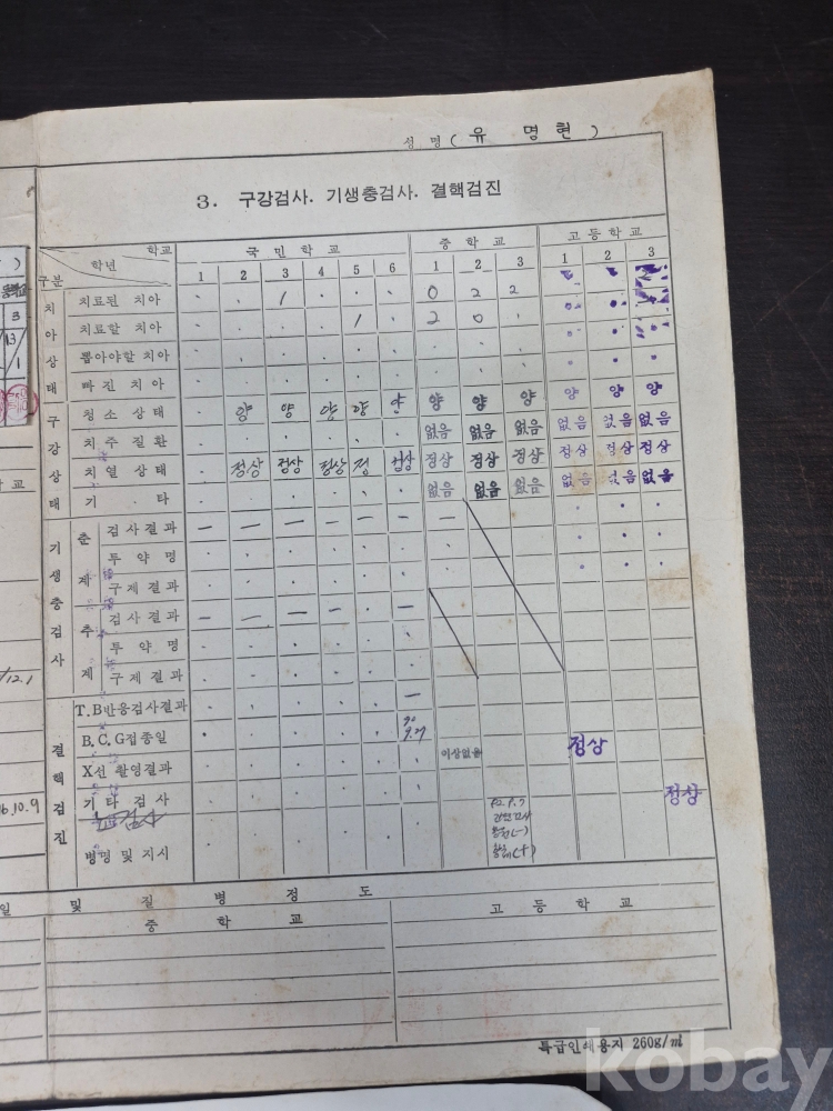 학생 건간기록부 1점 생활기록부 1점 2점 일괄 37*26