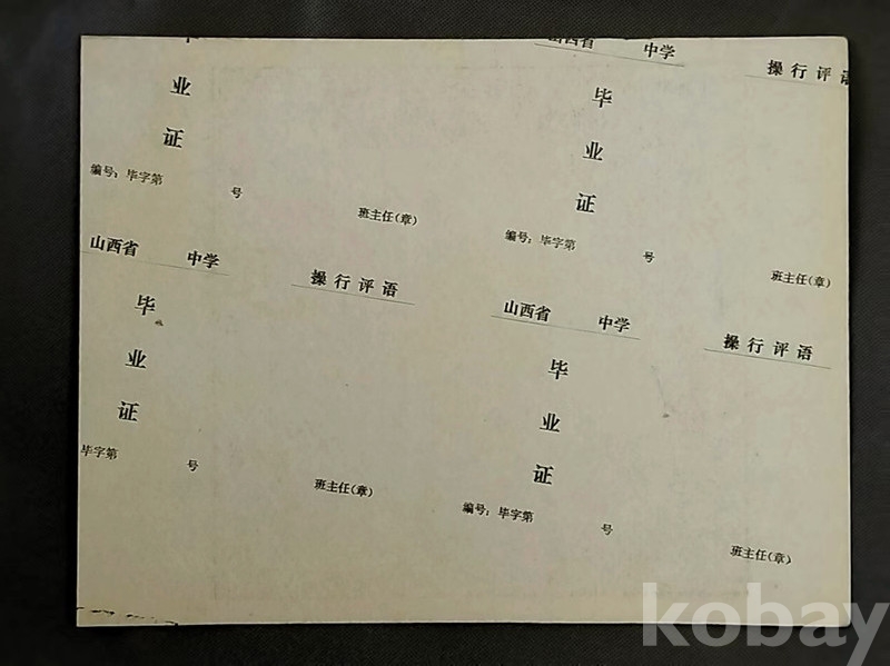 작품 뒷면을 보면 1970년대 산서(산시)성 중학교 졸업증이 인쇄된 종이입니다.