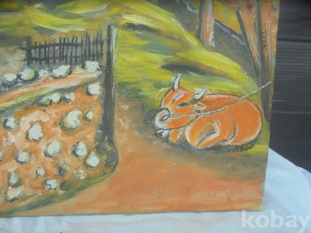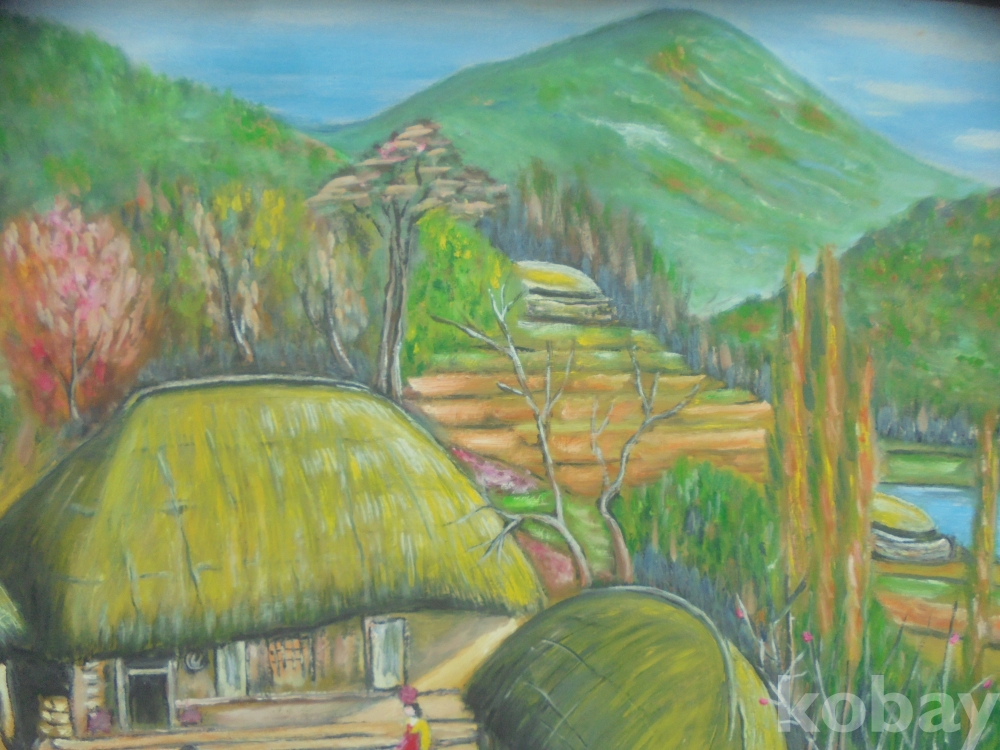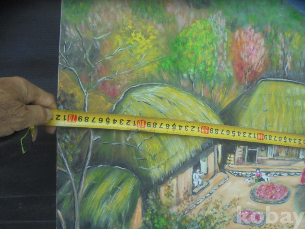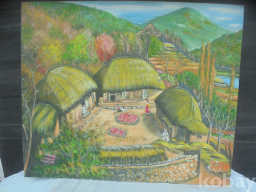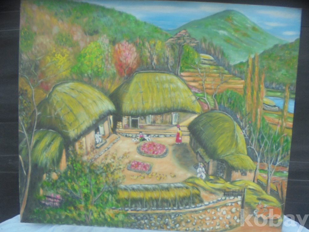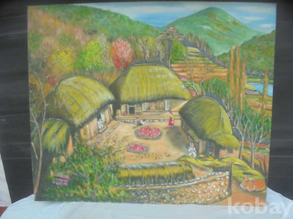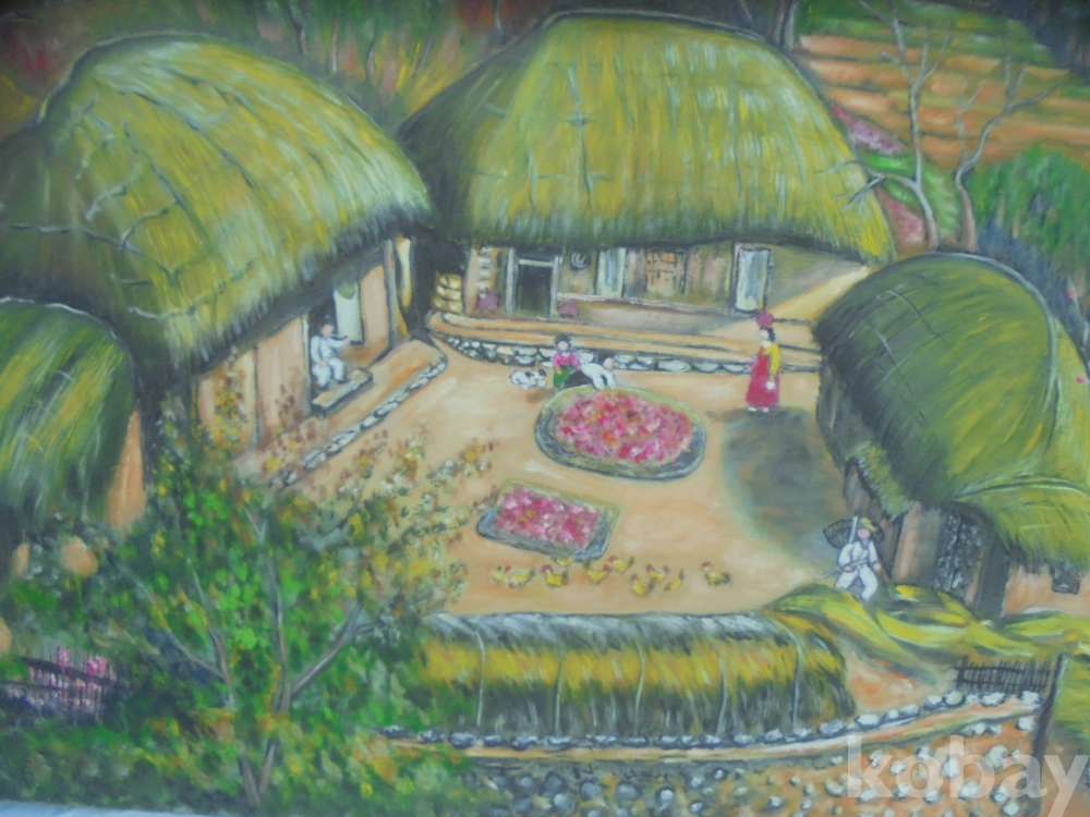 한국액자유화그림작품 ㅡ8 ㅡ초가집고향시골가을풍경