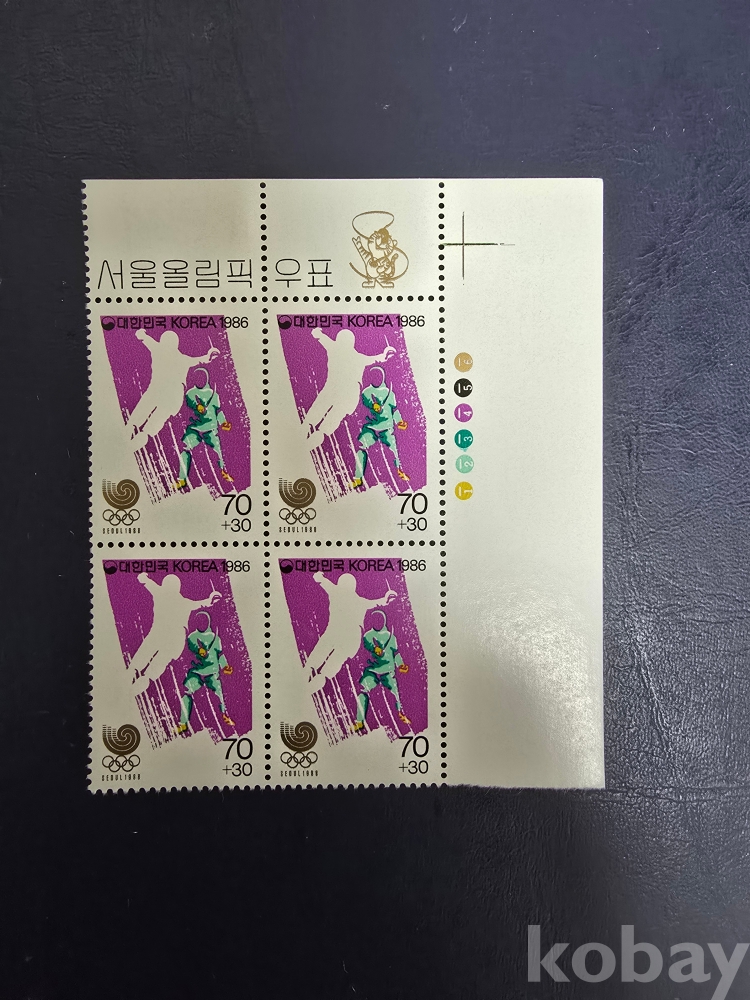 4B/L.86'3.25.88'올림픽 팬싱 미사용 우표