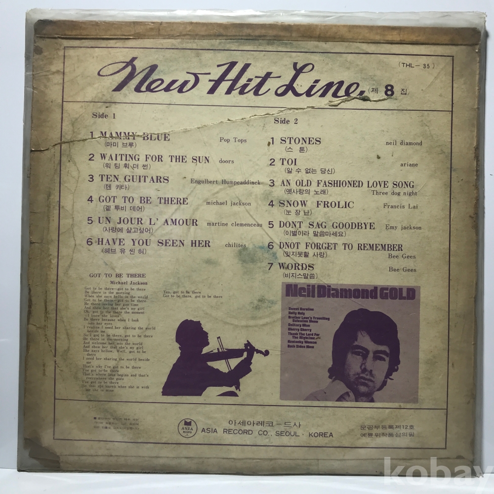 LP 90,050-104 New Hit Line 8집 . 자켓 VG 알판 일부 불량 70 년제작 국내반