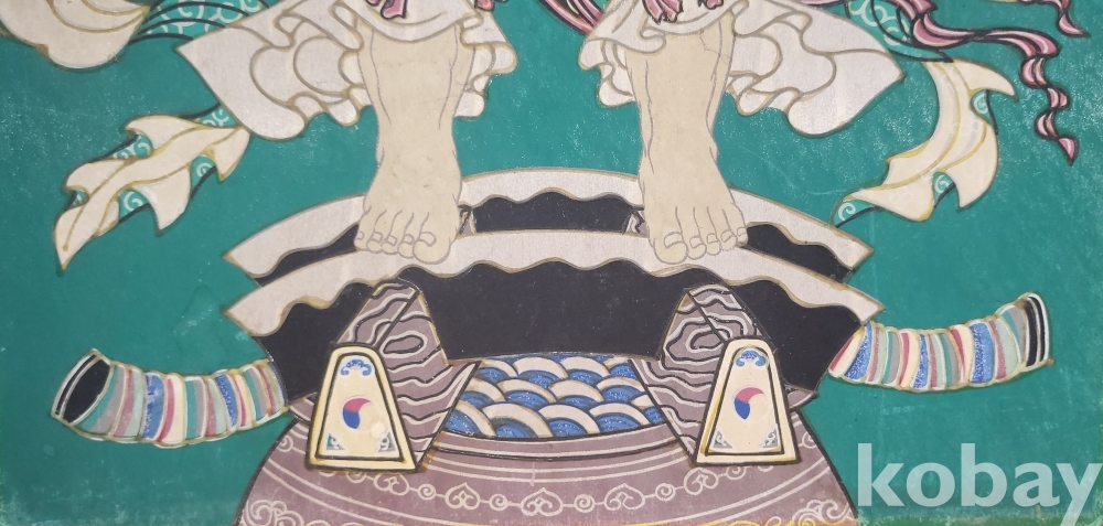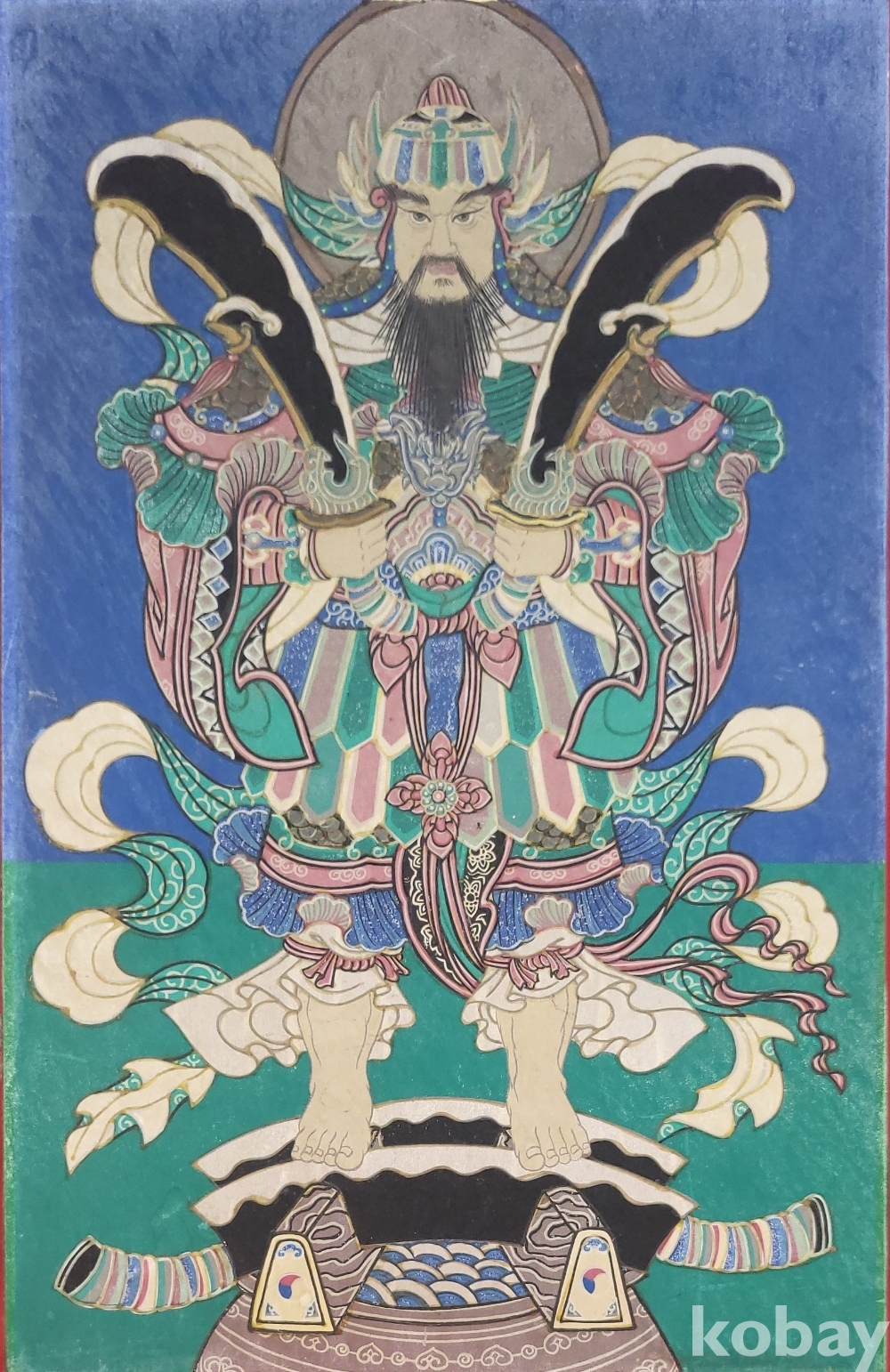 짱짱한 연대 갖춘 베바닥에 그려진 무속도(巫俗圖)입니다,
