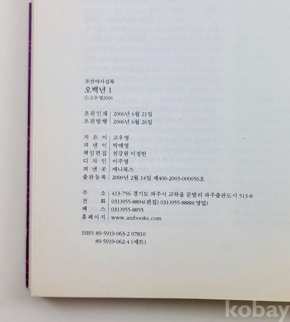물 품 명 | 오백년(1~4) 총4권 : 조선야사실록 / 2006년 초판 / 애니북스 |