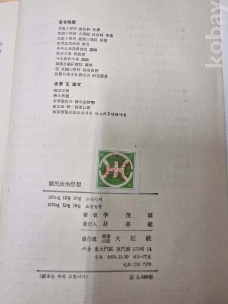 [국민윤리강의_국민정치사상] 저자 이무웅, 발행처 대왕사, 1976년 발행, 648쪽, 상태 중급(사진참조)