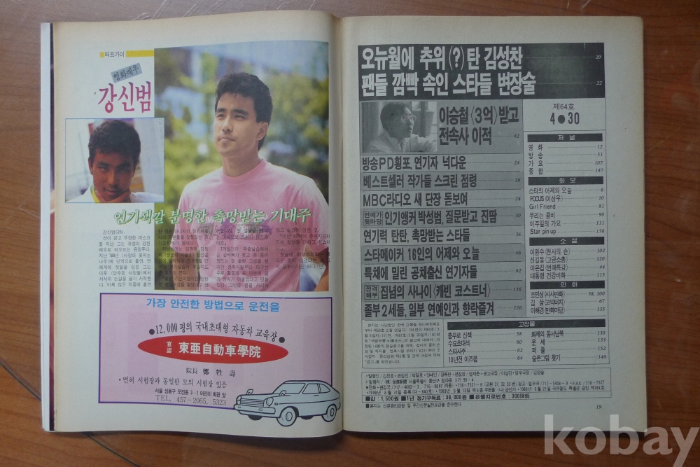 1991년 주간연예 스포츠 잡지 - 표지모델 영화배우 조용원 -