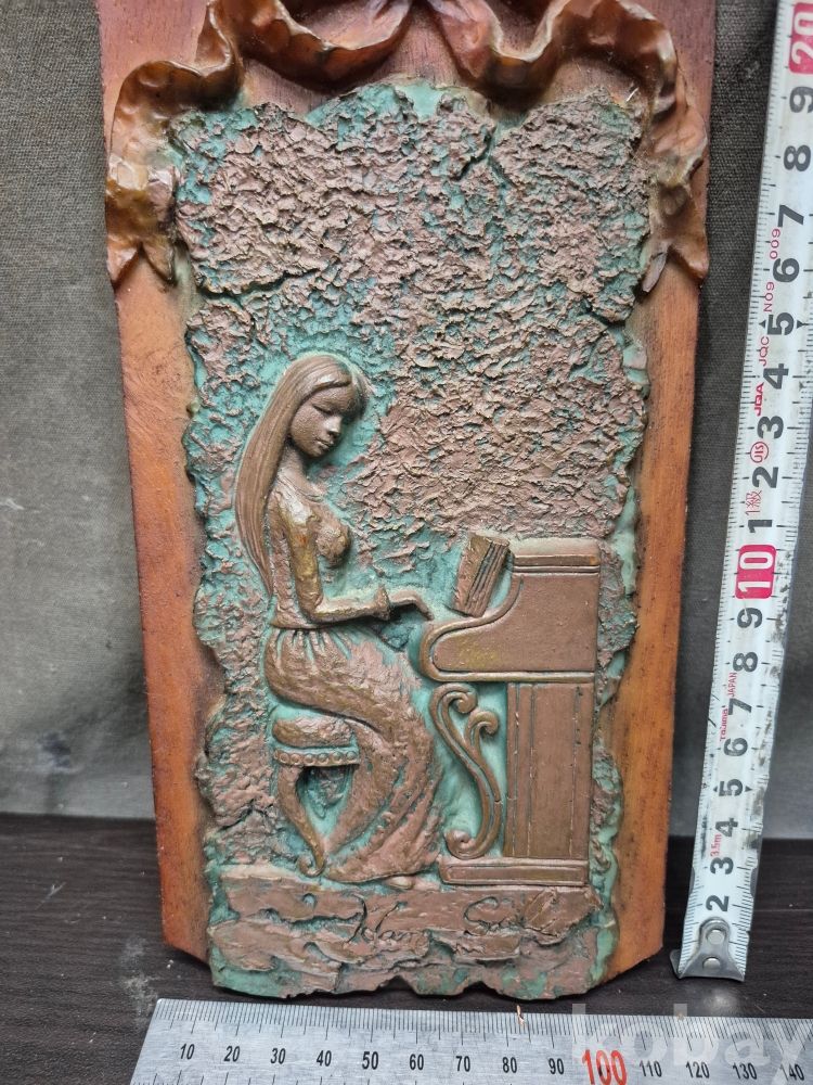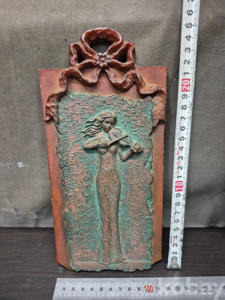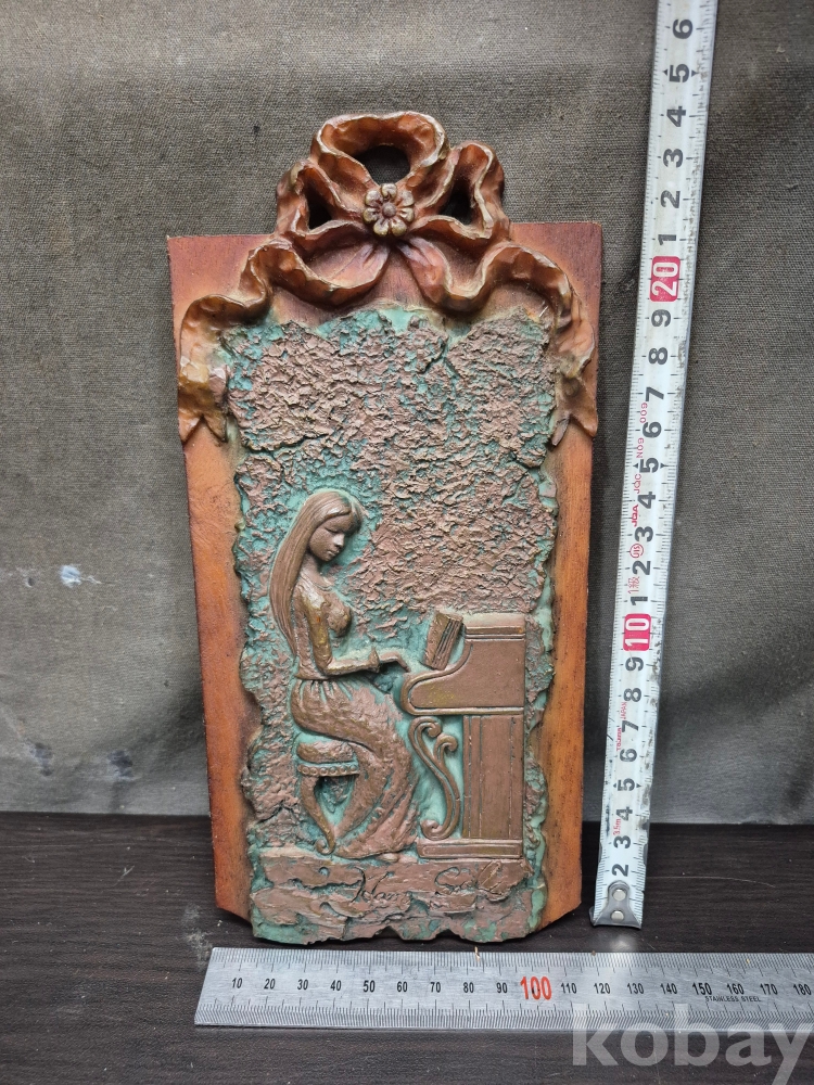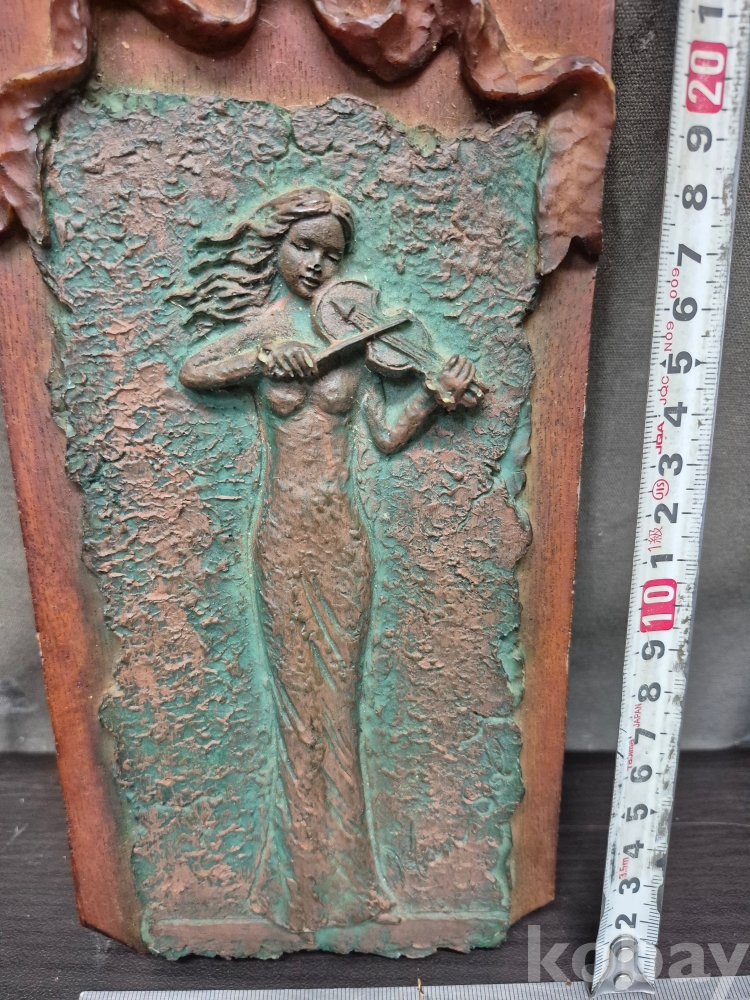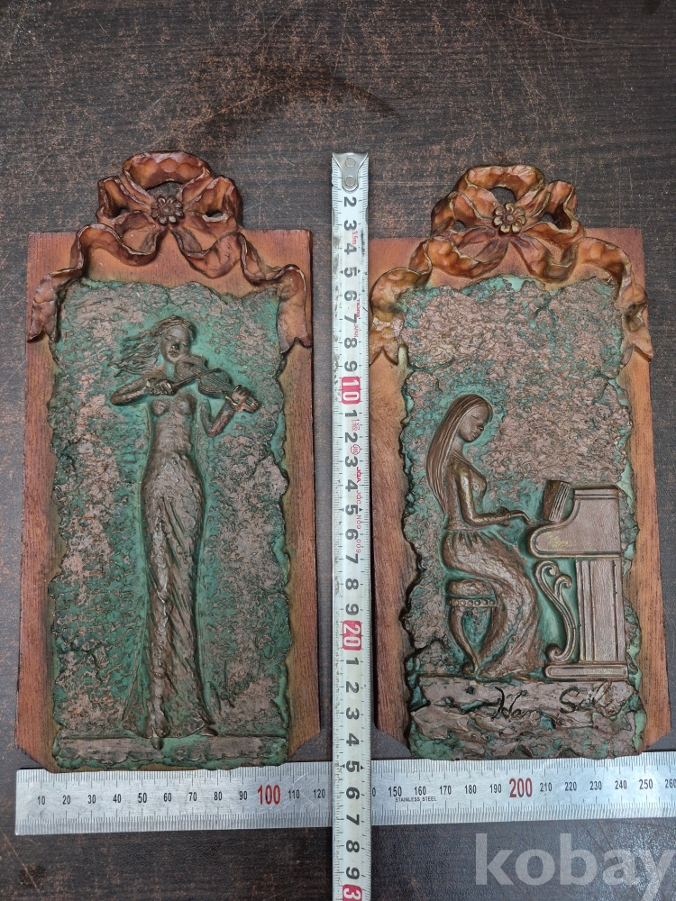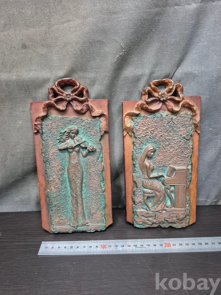 마블로 만들어진 엔틱한 벽걸이 바이올린연주하는 소녀와 피아노 연주하는 소녀 2점 일괄 12*2*25