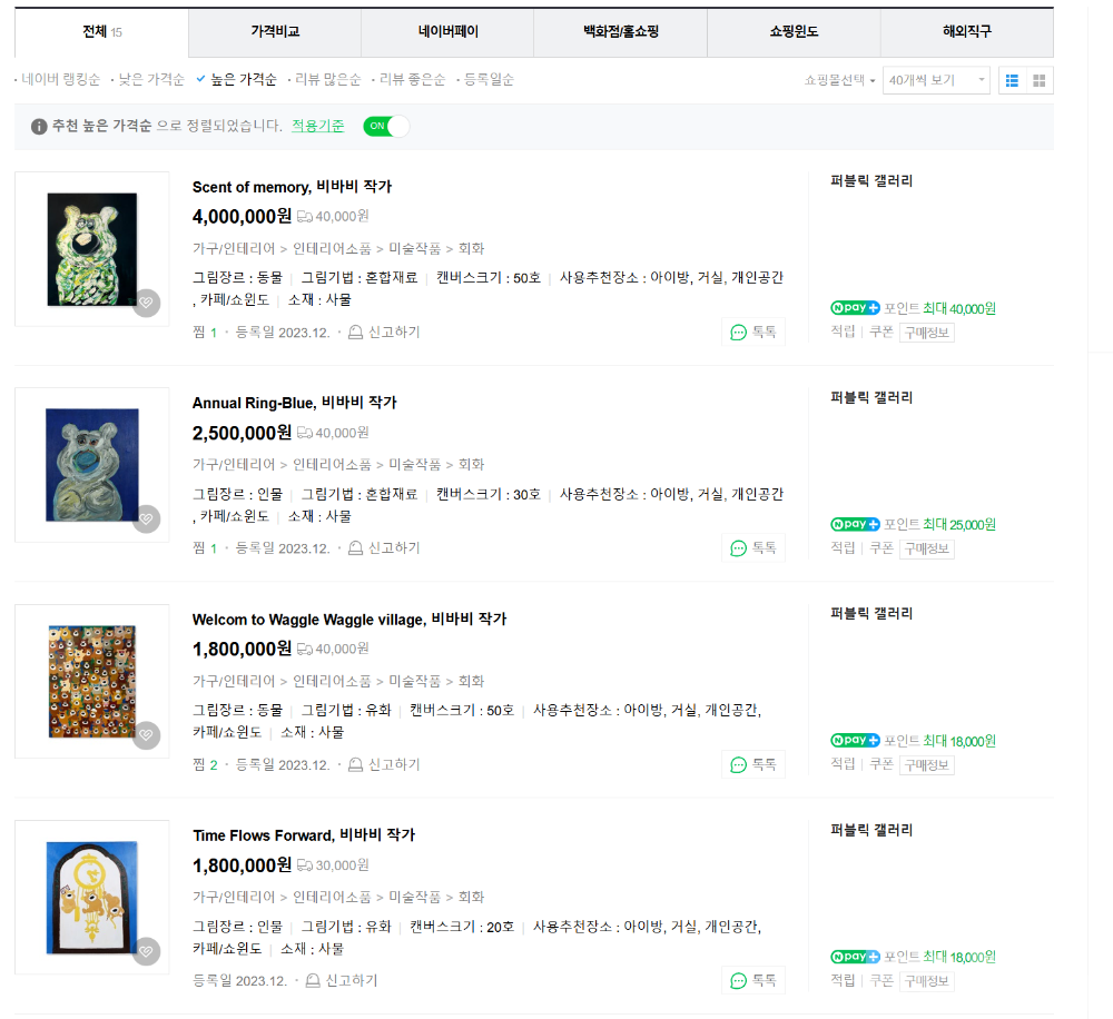 비바비 작가 감정서 포함 원화 원본 감정품 미술 재테크 옛날돈 구권 골동품 그림