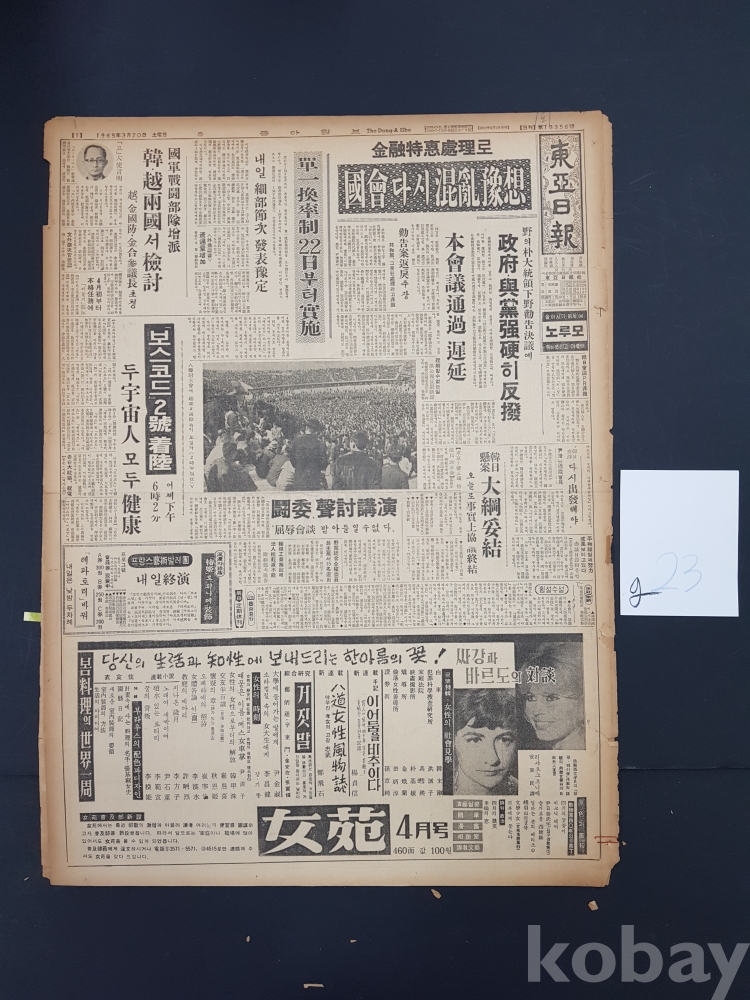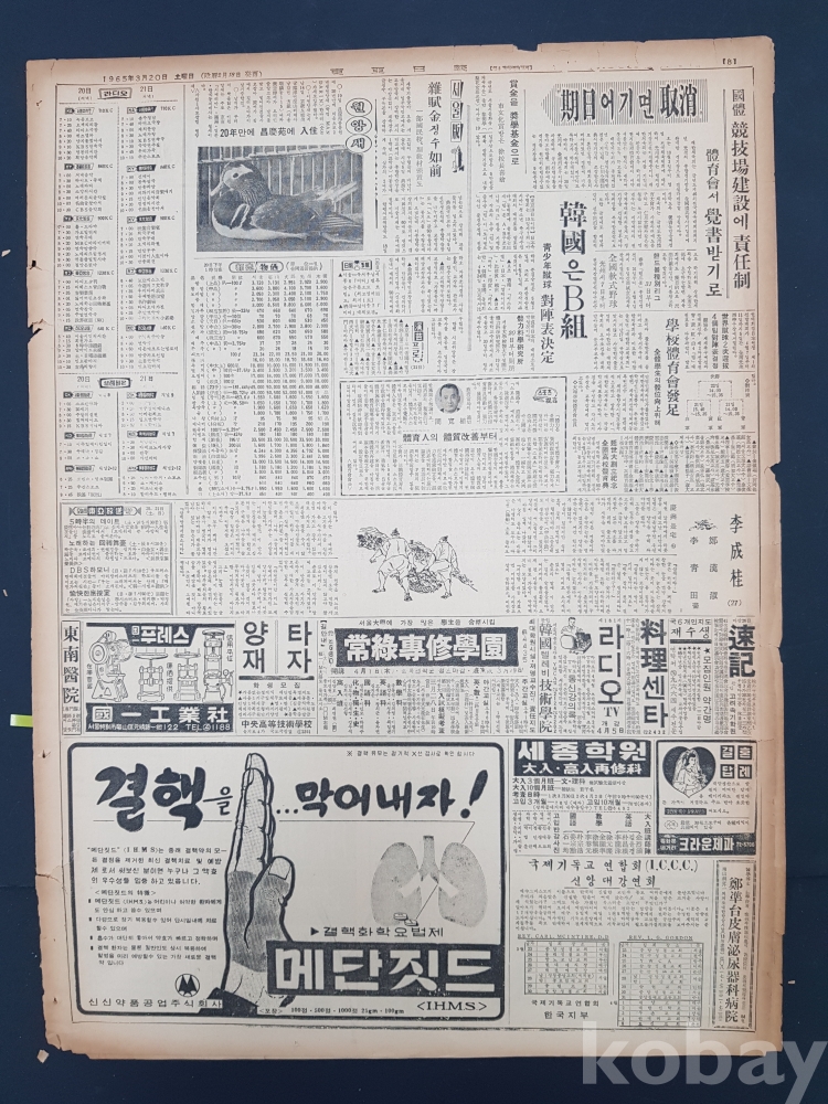 **** 동아일보/1965년 3월 20일/8면*'무기여잘있거라'등 영화 광고포함