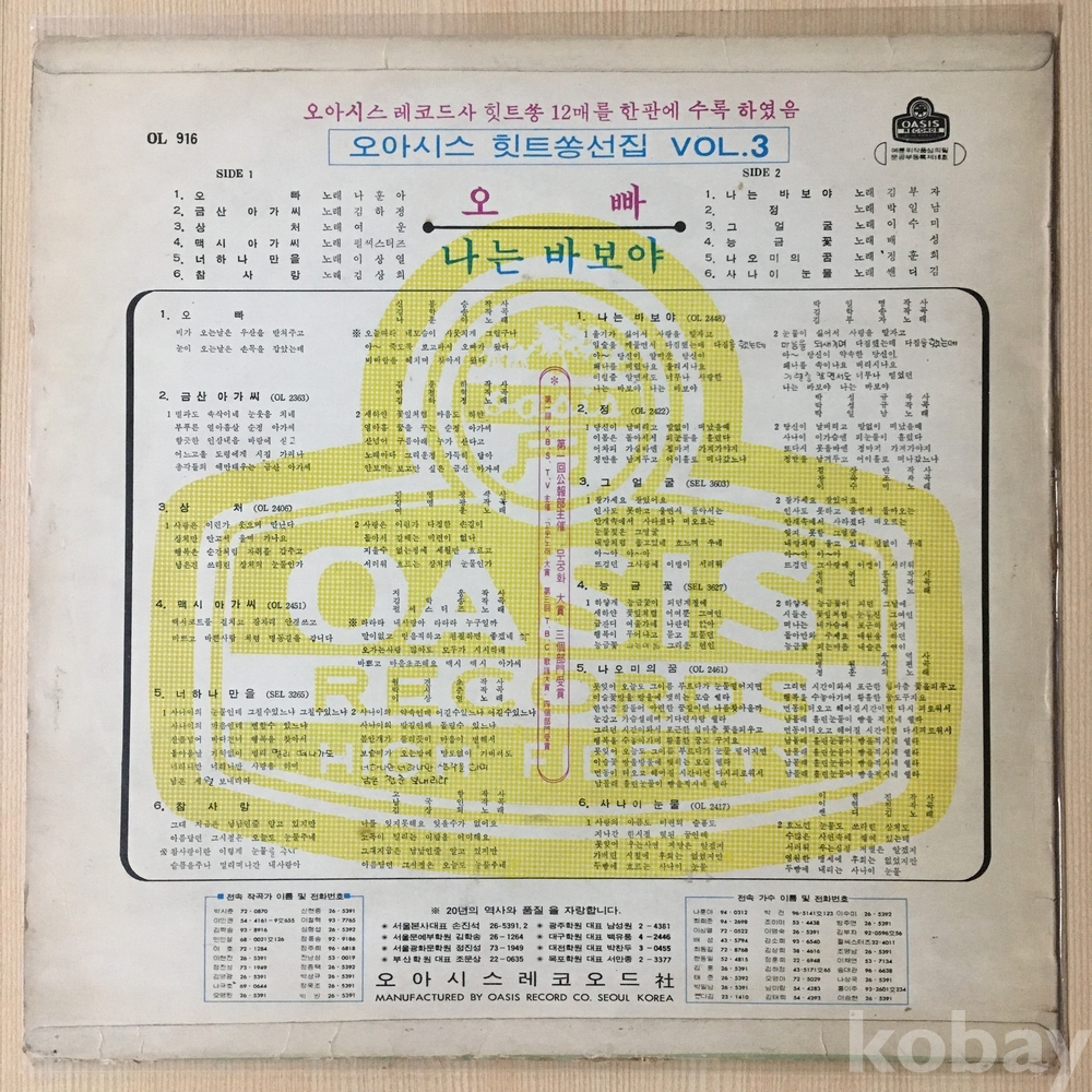 . 가요음반 대부분은 휘어짐이나 손상을 방지하기 위해 무지싱글자킷을 하나 더 사용하여 보관되었던 음반들입니다.