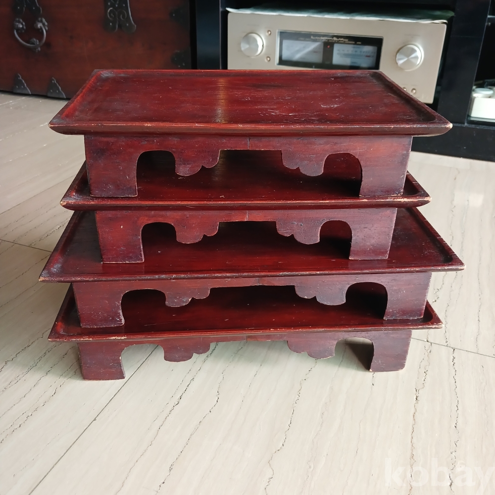 칠 목각 풍혈부분 상판에 파인턱 ᆢ 물건이 흘러 내리지않게 테두리 팜ㆍ ㆍ 완벽한 어느곳 흠없는 편대 4 개 셑ㆍ오랜 세월에 이렇게 완벽 할순 없습니다 쌓아만 두워도 예술입니다