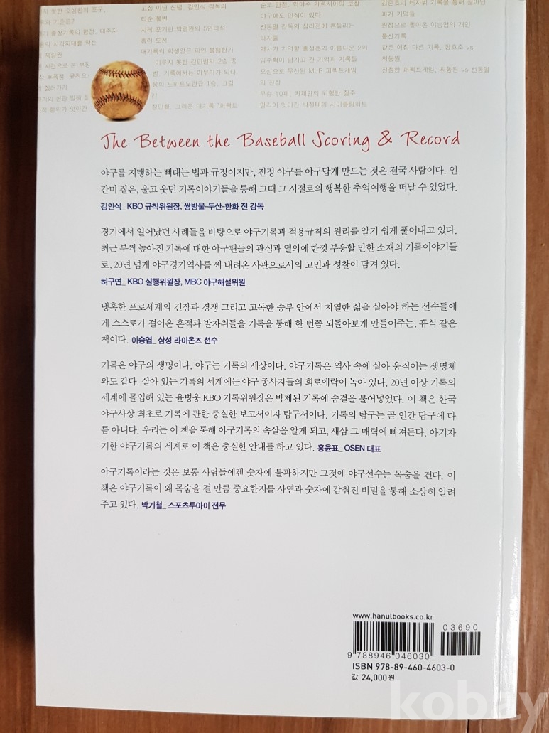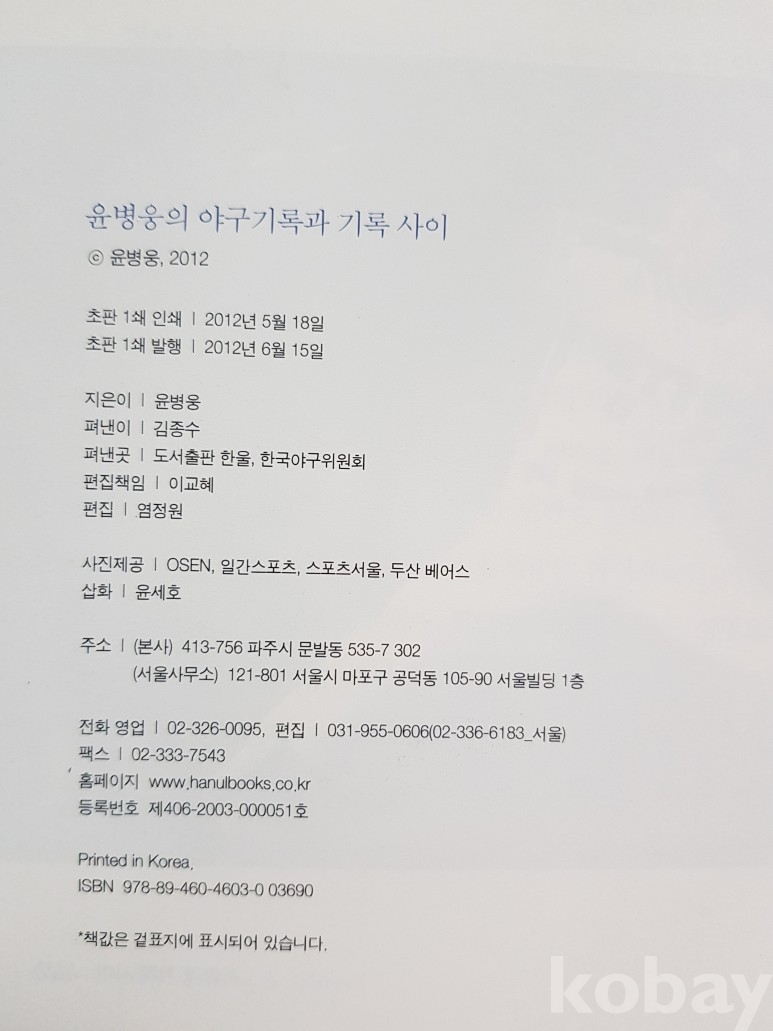 설명: 이 책은 한국 프로야구 자료를 윤병웅의 야구 기록과 기록 사이라는 책으로 발간한책입니다..