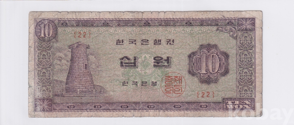 - 유년도 1963년 첨성대 10원 미품 정도의 지폐 입니다.