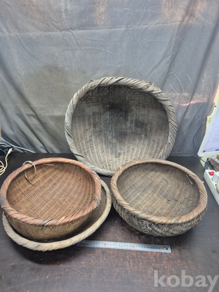민속품 오래된 대나무 소쿠리 4점 52*52*21