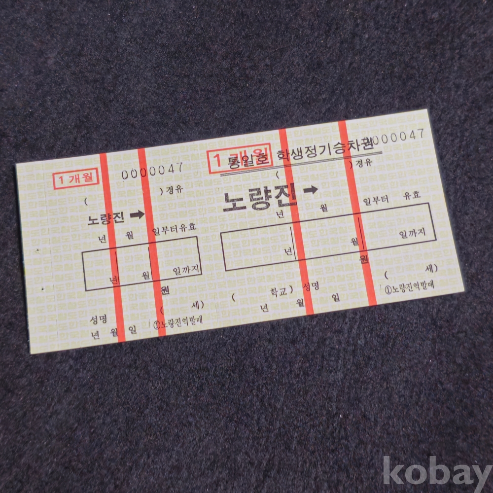 (천원경매) (((철도자료))) 오래전 통일호 학생 정기승차권 (노량진역발매) (1개월)