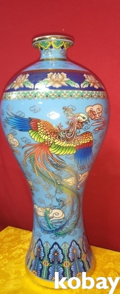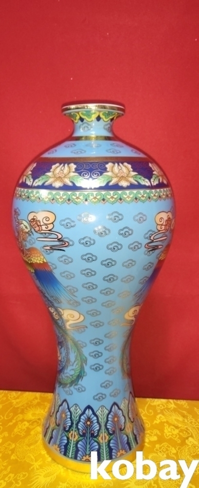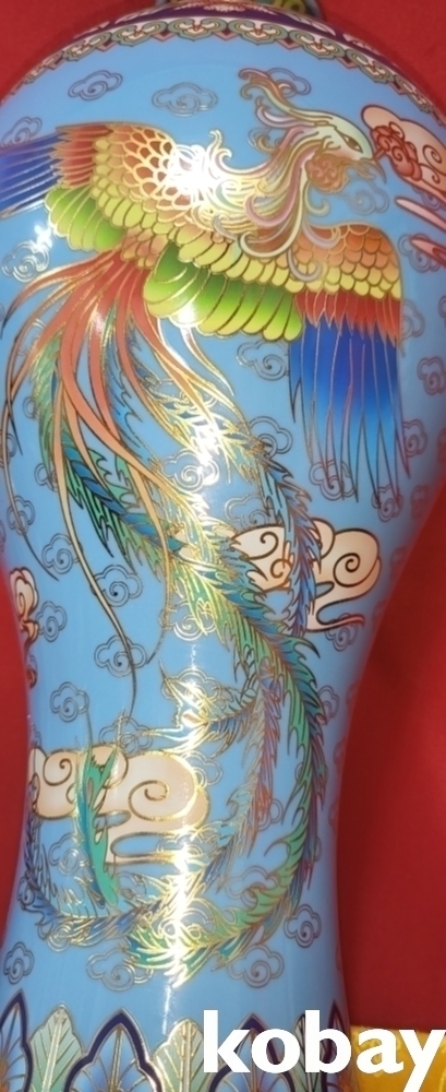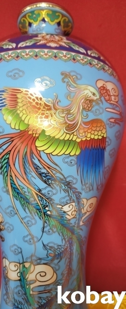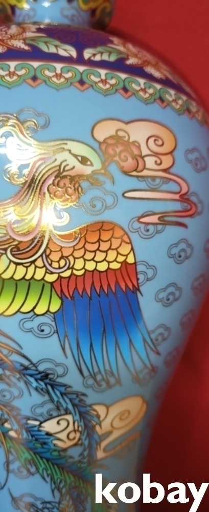 건륭어제(乾隆御製) 하늘색 바탕에 금채 쌍봉황(㕠鳳凰) 문양 매병입니다,