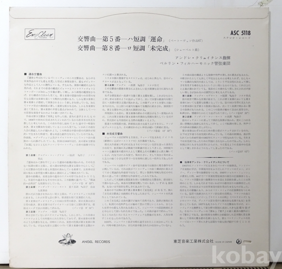 Beethoven / Symphony No.5, Schubert / Symphony No.8 - Andre Cluytens