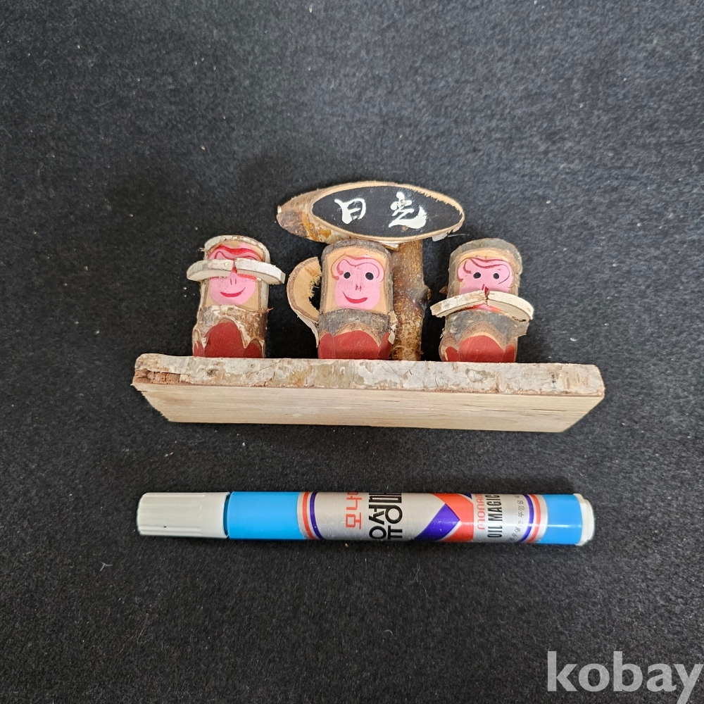 (((관광기념품/목각))) 오래전 일본에서 만든 못난이 원숭이 3종 목각인형