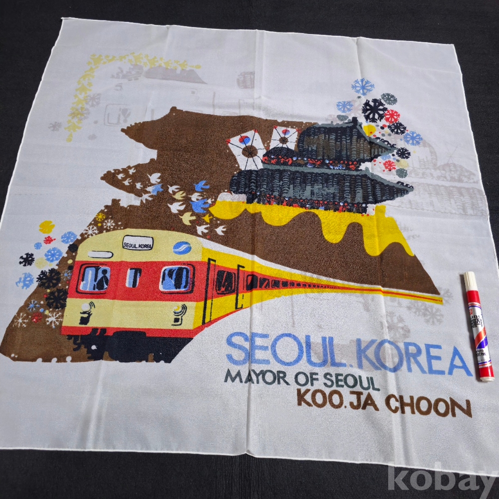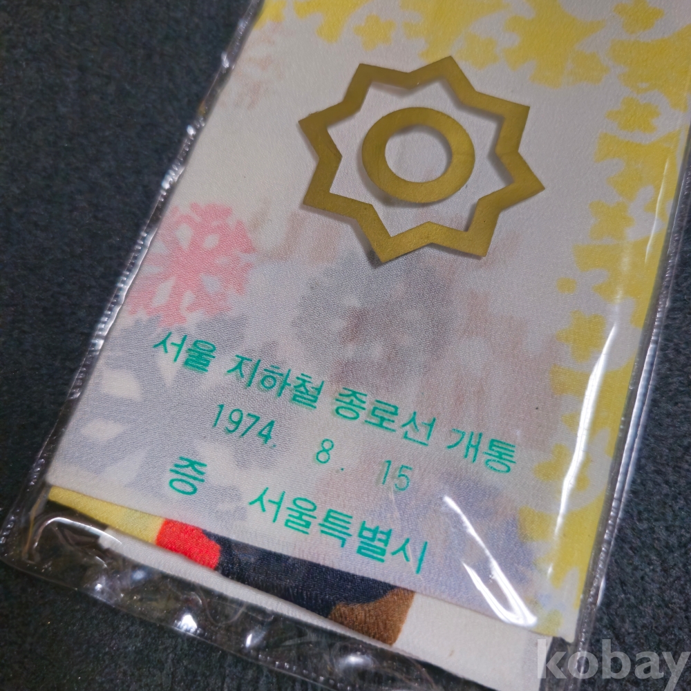 (((지하철자료))1974년 서울지하철 종로선 개통기념 보자기 (1974.8.15 서울특별시장 증)