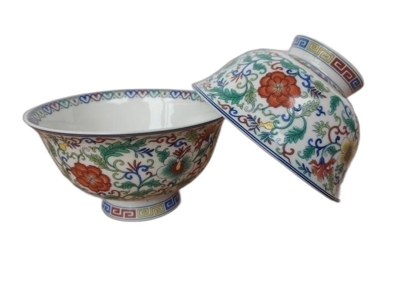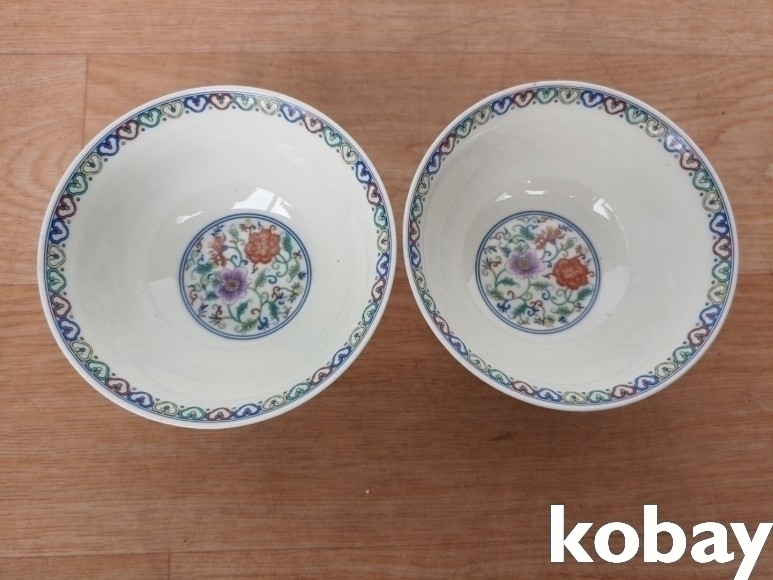 꽃 문양이 아름다운 오채 다완 도자기 2개 입니다.