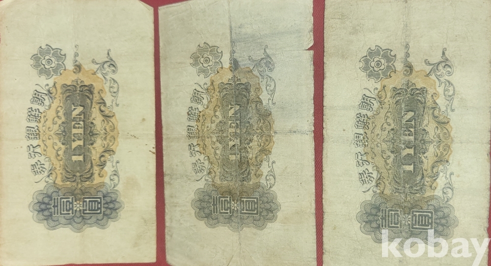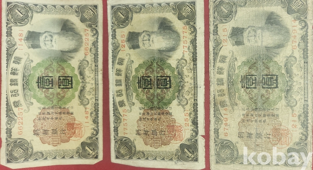 조선은행권 일원짜리 지폐 3장 일괄입니다,