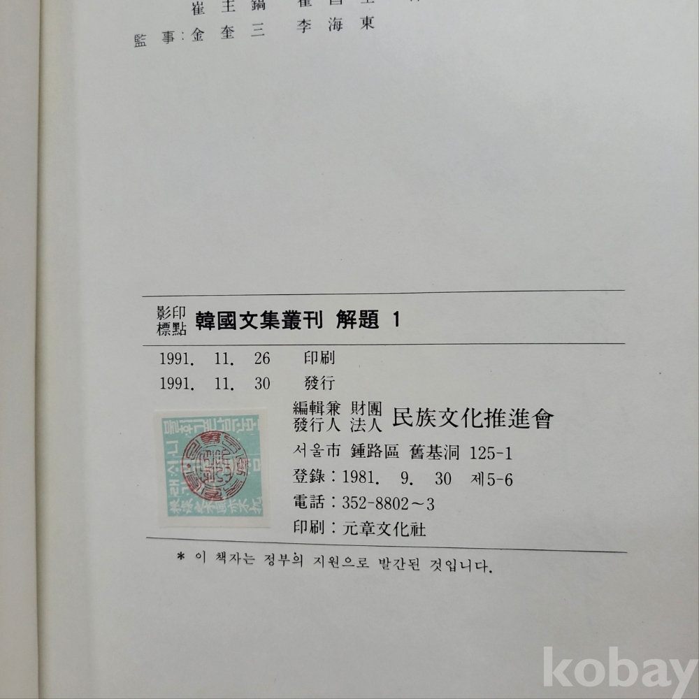 [만원경매] 한국문집총간 (影印標點 韓國文集叢刊) 5권만 일괄 입니다. 상태는 양호합니다. 이미지 참조 ; 귀한 책들이죠.