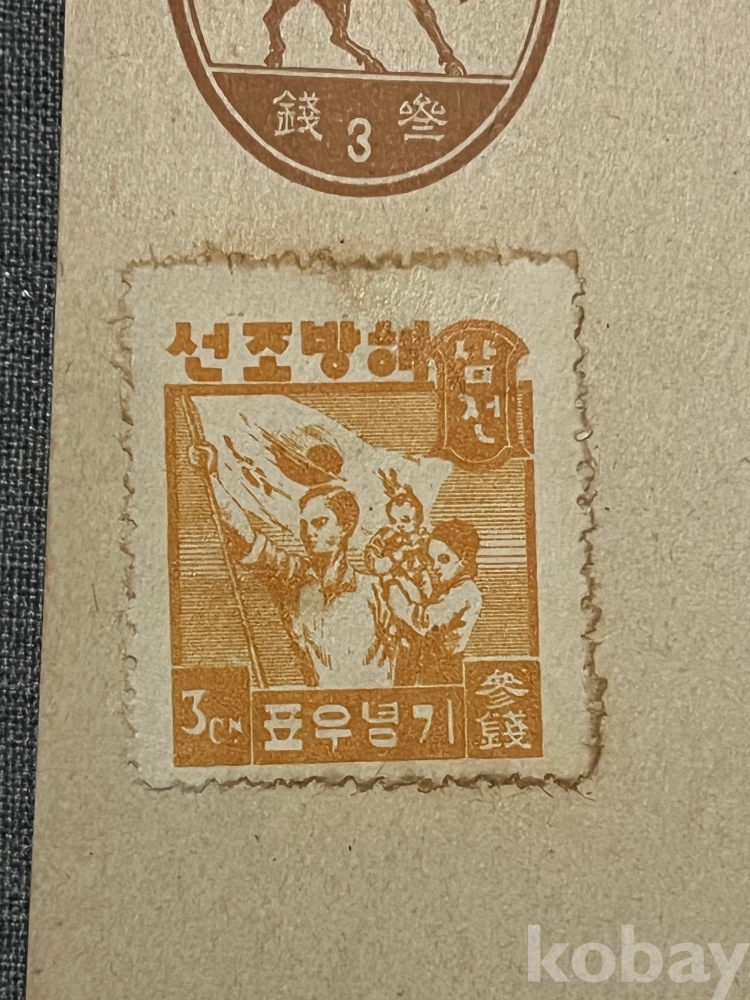 3전 남공엽서에 1946년 3전 해방조선 우표가 첩부되어 있습니다.