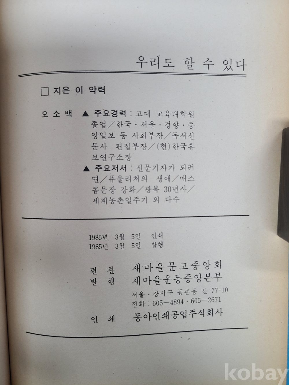 **** 우리도 할 수 있다 (‘88 서울올림픽 관련) -함께 하면 더욱 더 잘된다- 오소백 저, 1985년, 새마을운동중앙본부, 243쪽