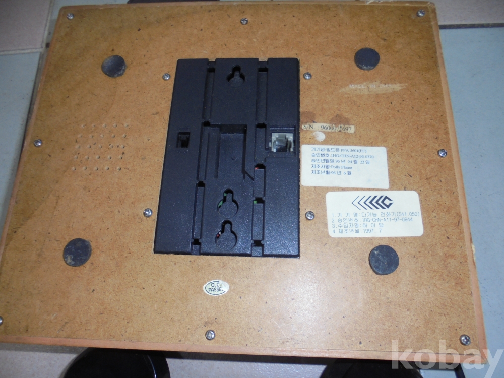 특이하게 양쪽드는데가있고 스피카 스위치 누르는데가 많은 수화기도 색다른 제조일 97년인 특이한 고급전화기