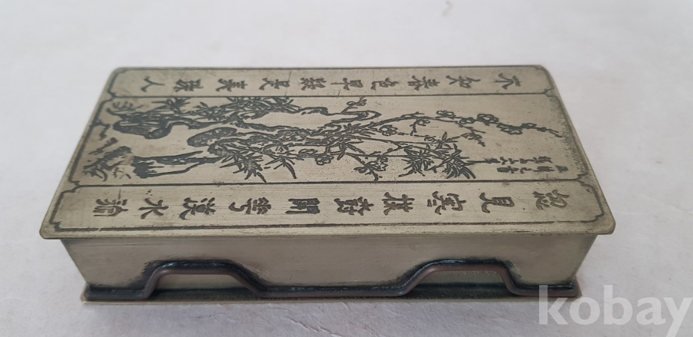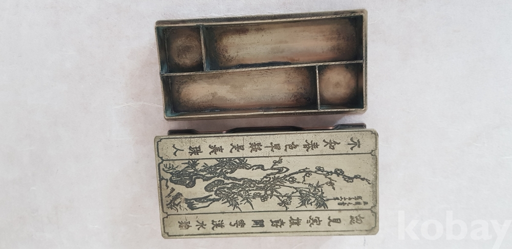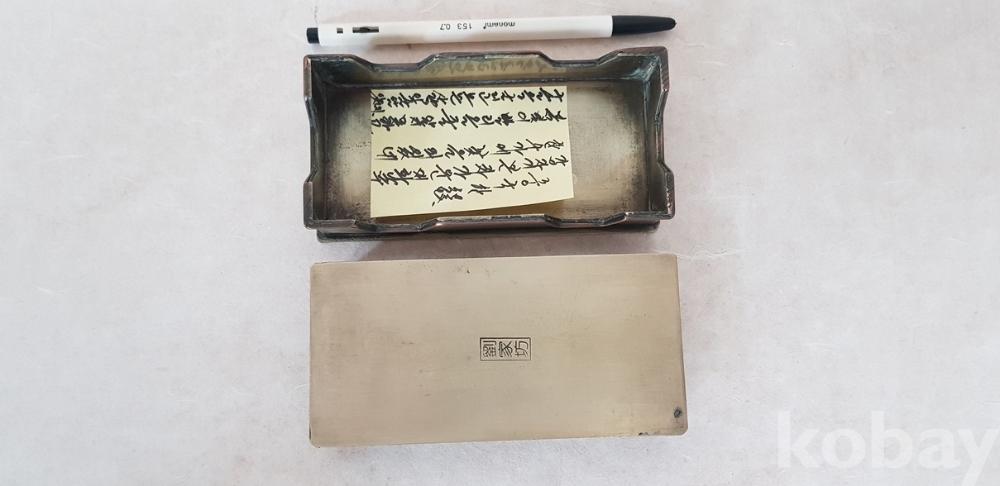 @. 묵직하고 오래된 골동급 유기 먹물통.