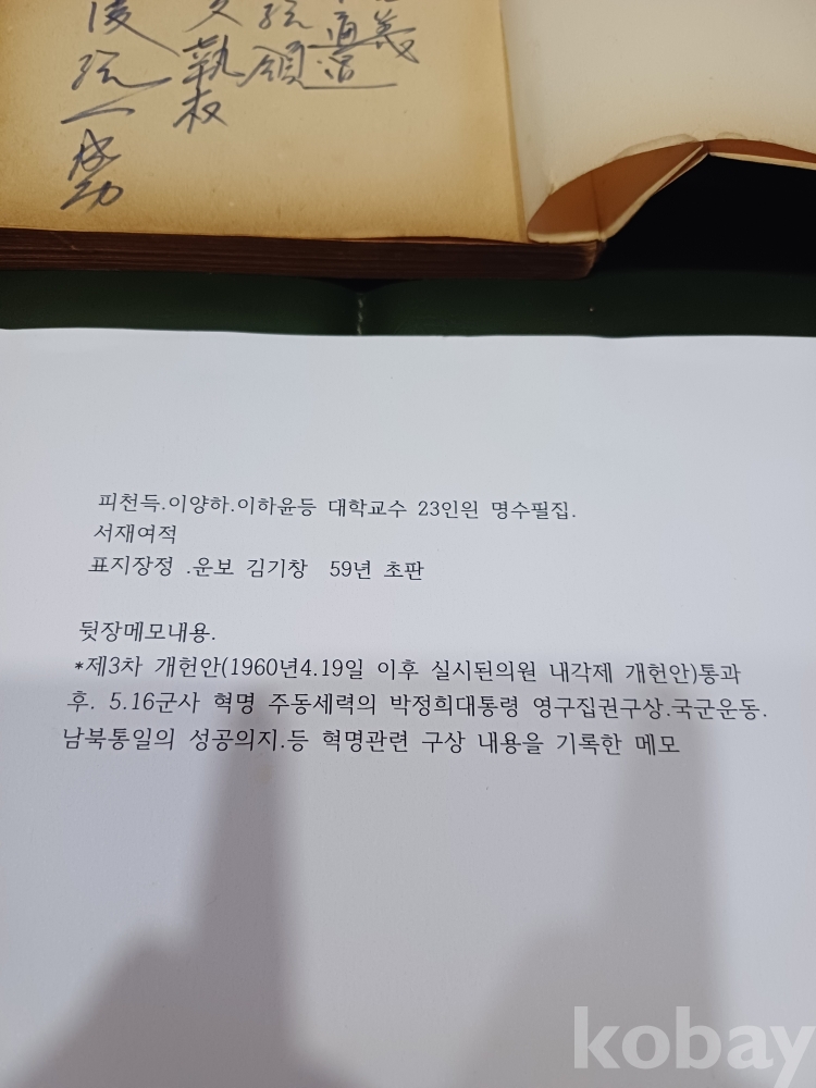 *희귀본*박정희 대통령 관련 메모 명수필집