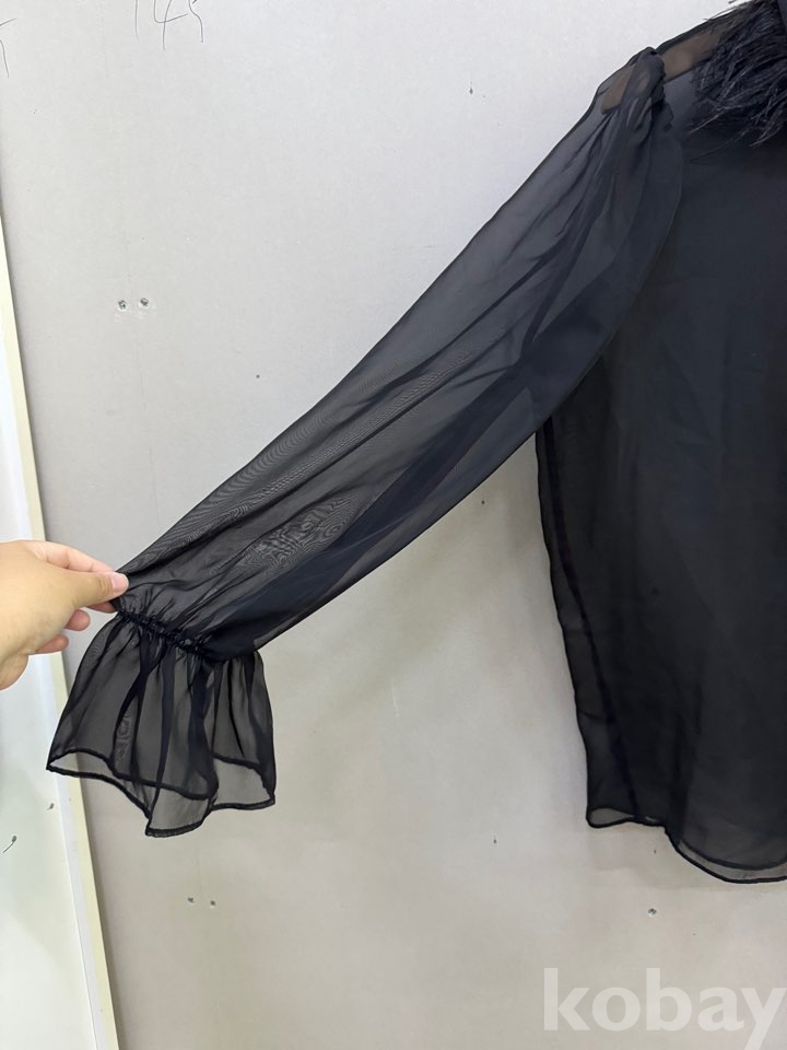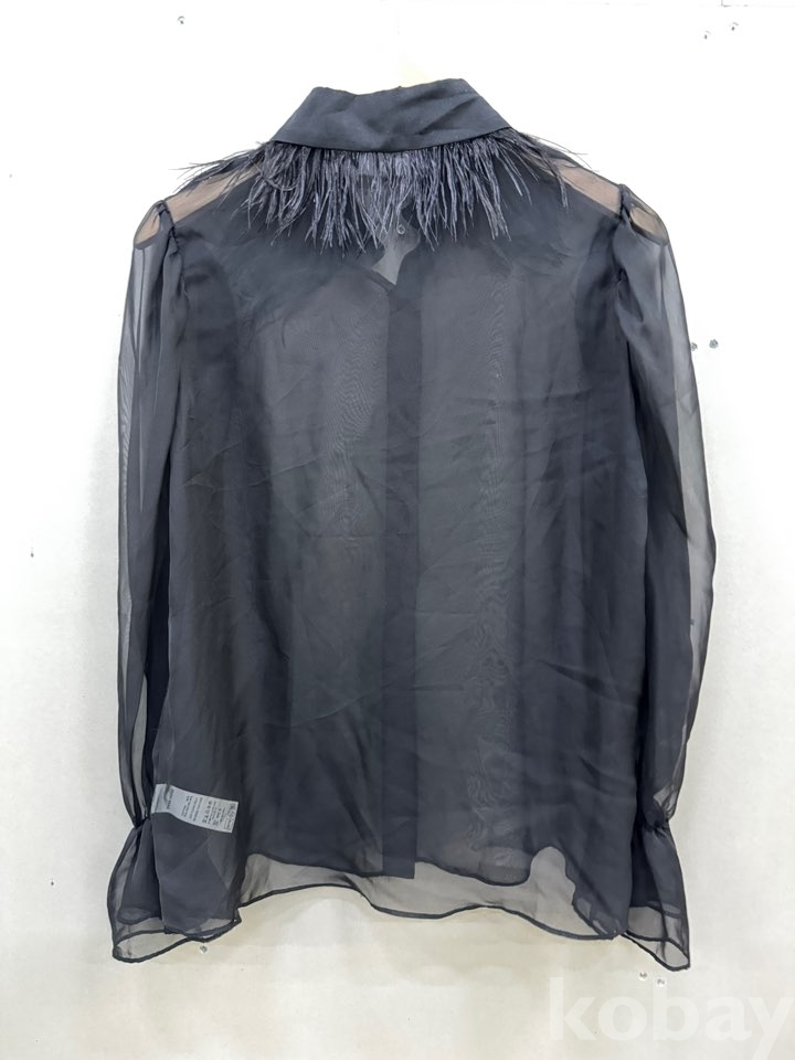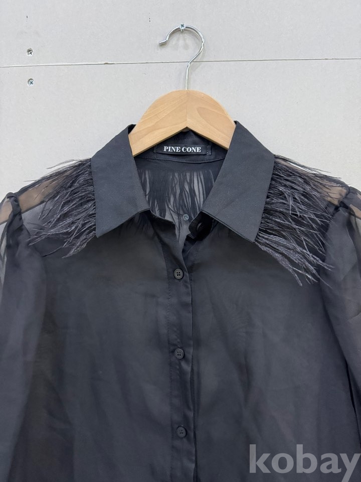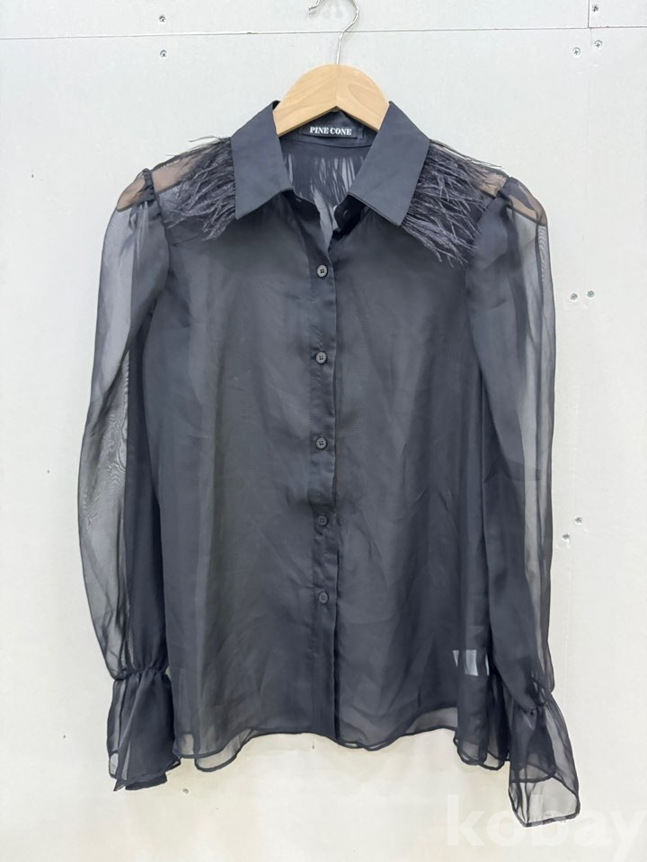 [천원옷장] #16 파인콘(PINE CONE) 여성용 블랙 시스루 블라우스 깃털 포인트 셔츠 77