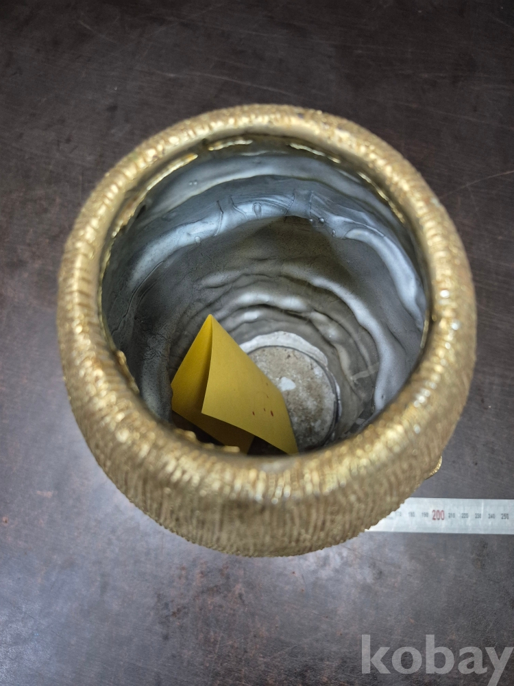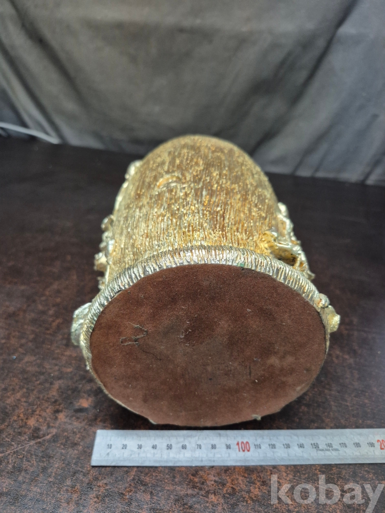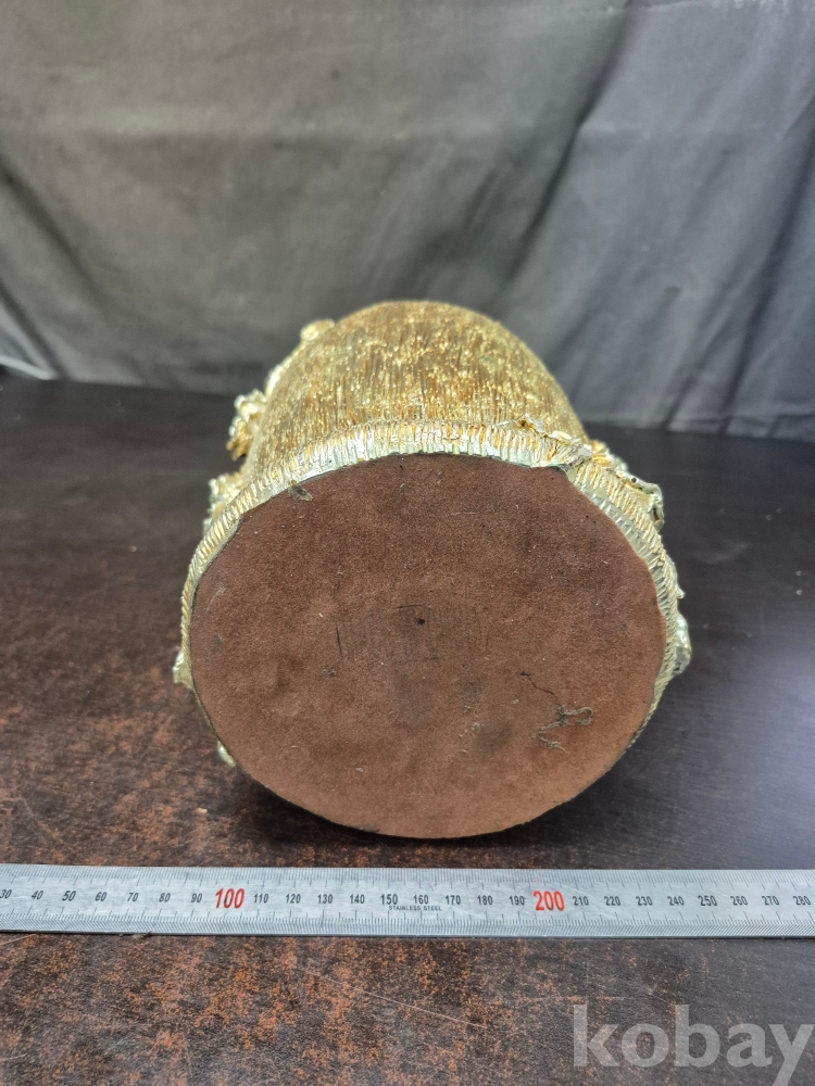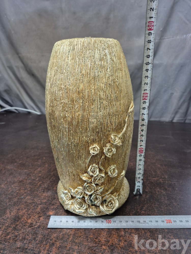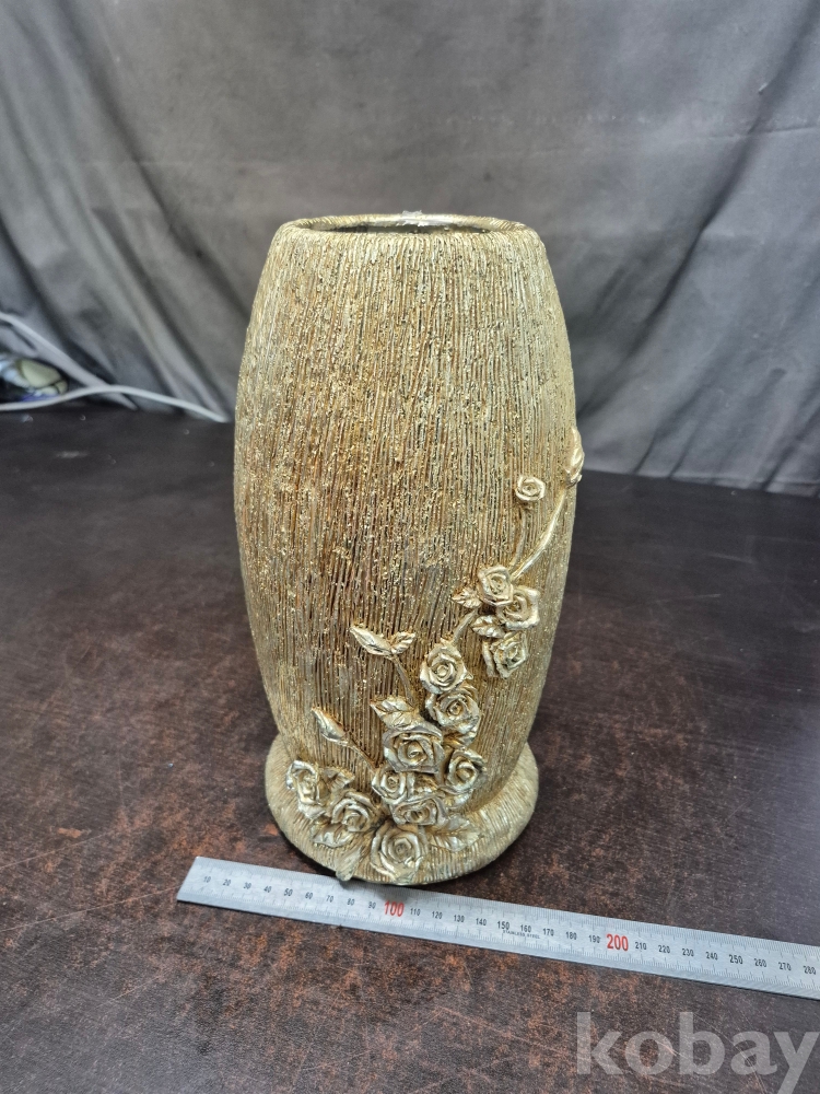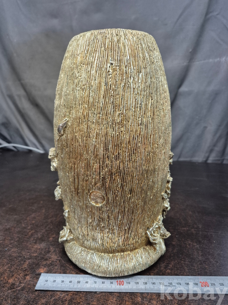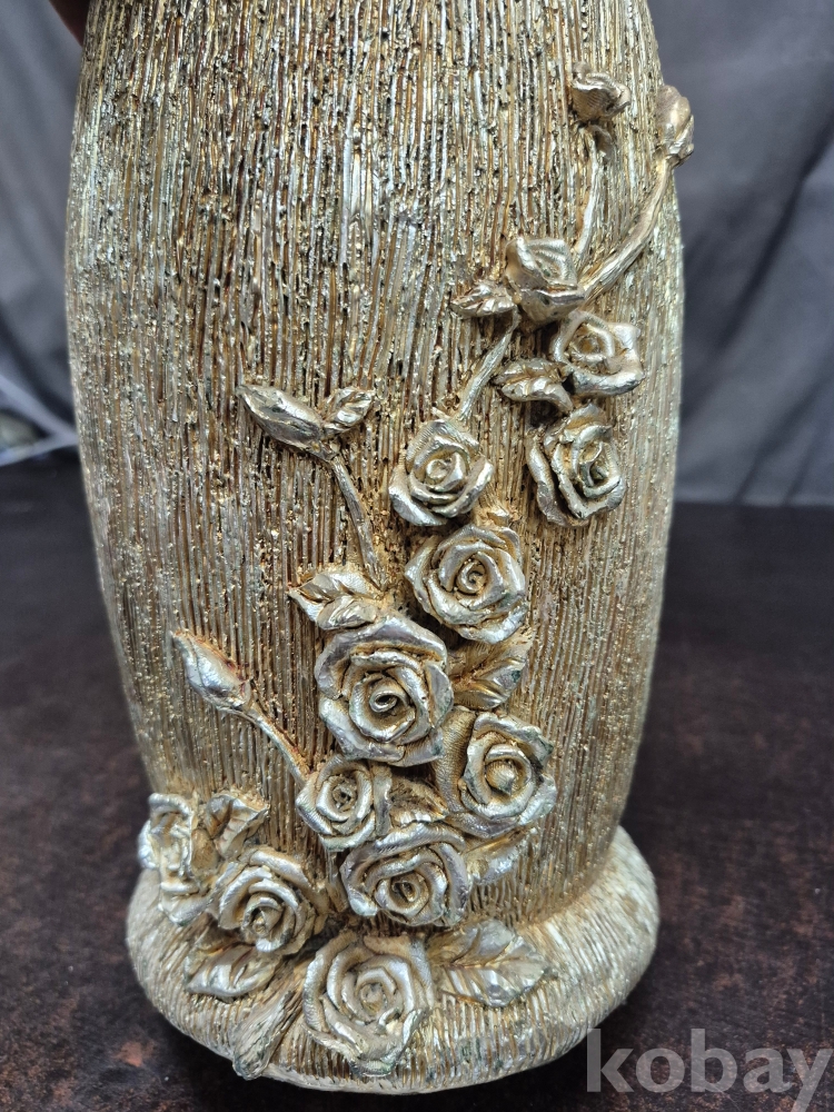 마블로 만들어진 화병 장미문양이 양각으로 만들어져 있어요 금색깔 이에요 16*16*30