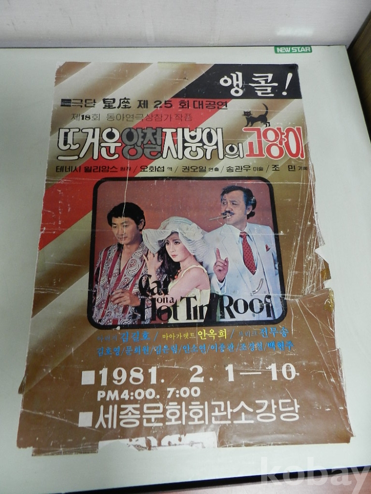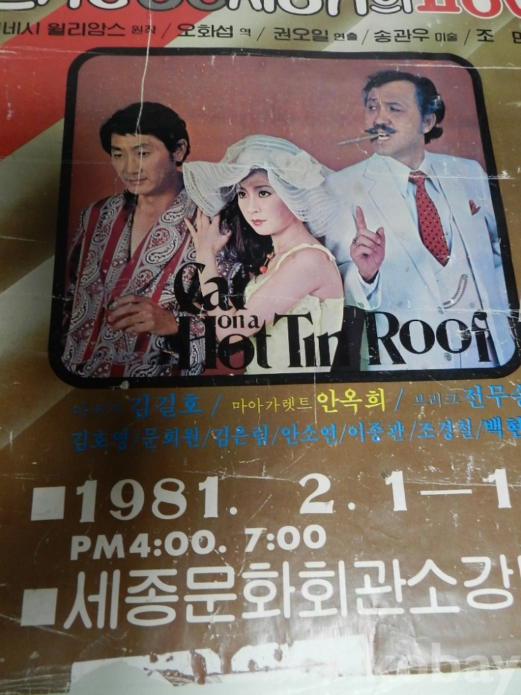 45년전의 당시 유명배우 전무송 안옥희 출연 세종문화 회관의 연극 포스터 입니다 그당시 실부착 벽보 포스터 로 찟김 헤짐등 실사용감 있습니다 문화자료 전시용으로 좋을거 같습니다 이미지 참고 바랍니다