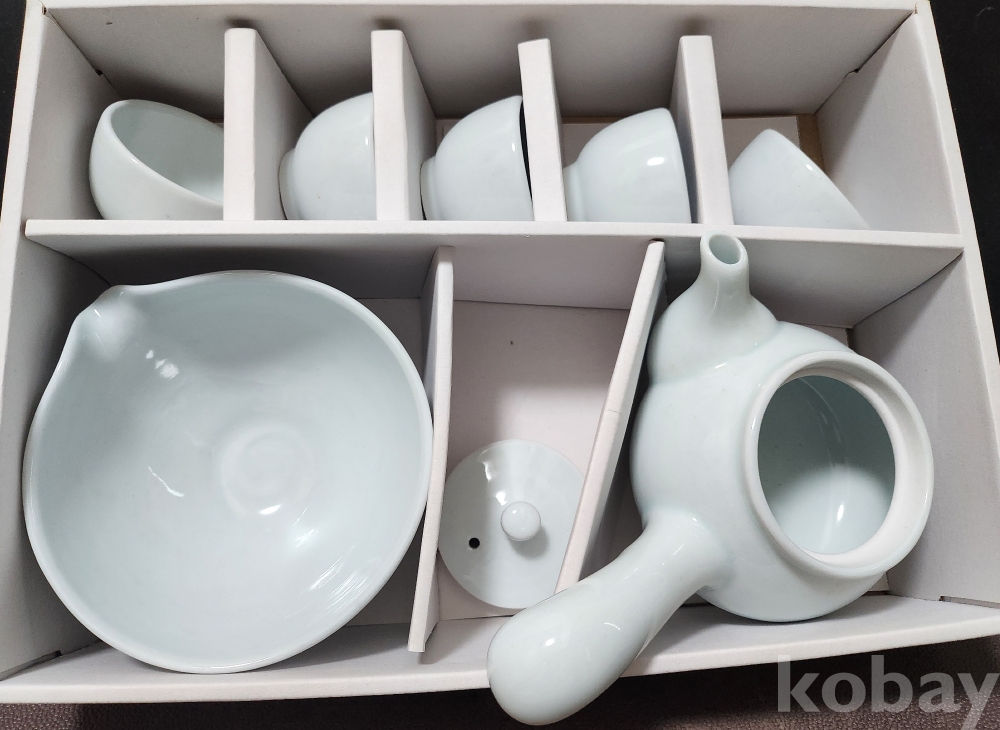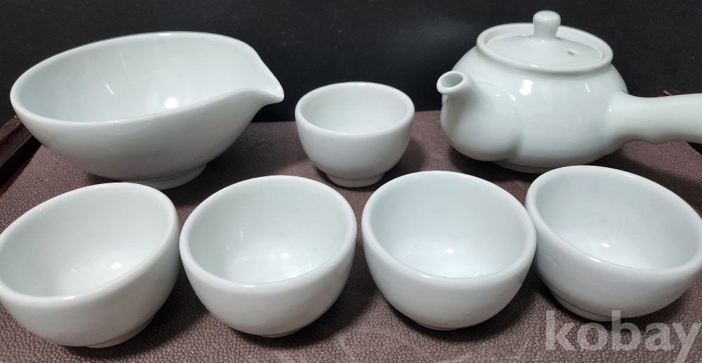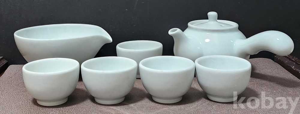 < 도예명장 > 미강 美江 노영재 魯英才 백자 다기 白磁 茶器 < 미사용 박스 완비 >