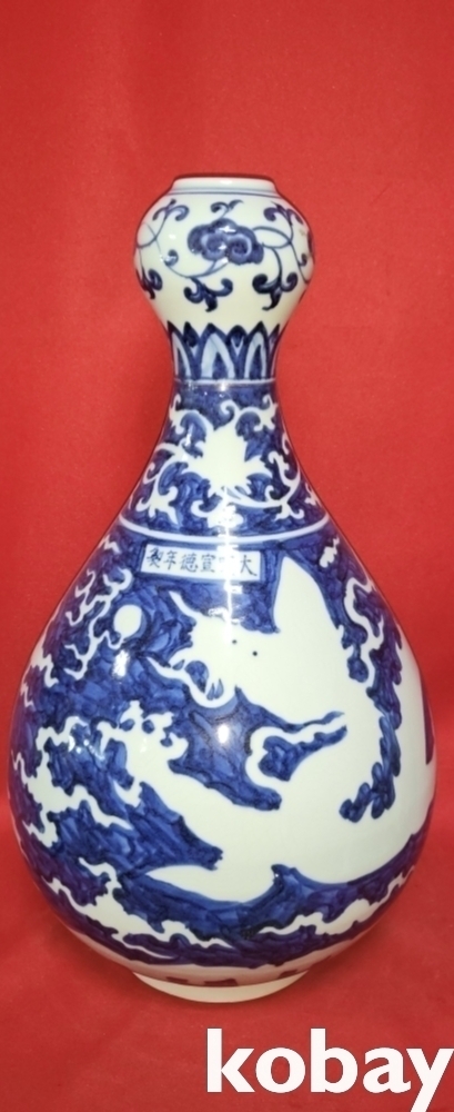 대명 선덕연제 (大明宣德年製) 관지가 보이는 청화백자 백용(白龍)문양 산두병입니다,