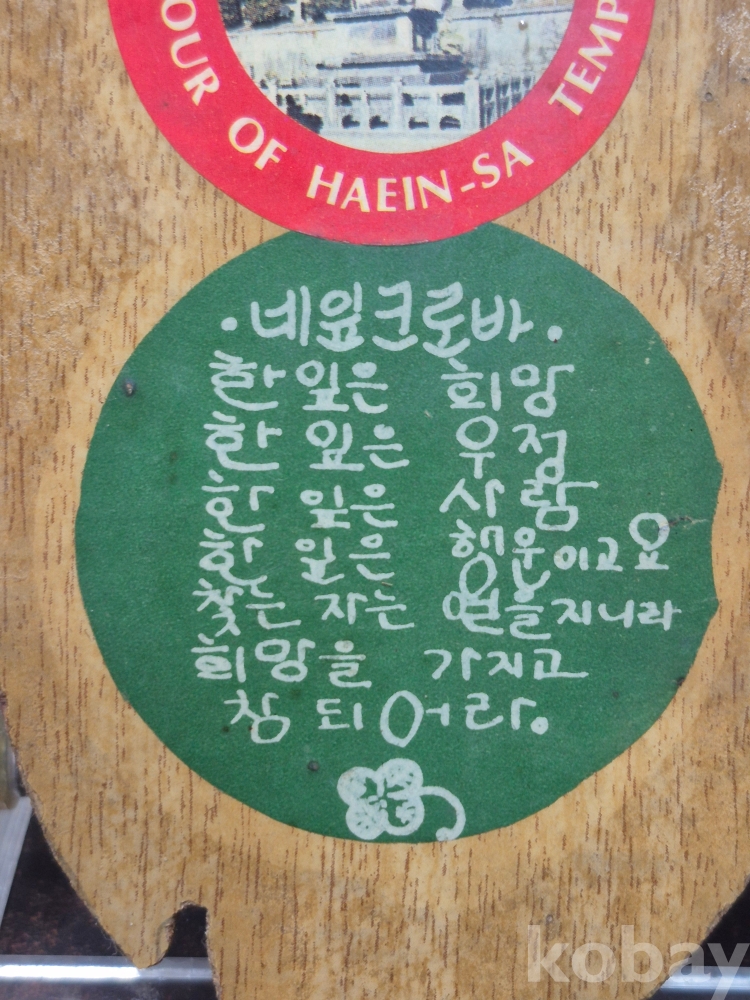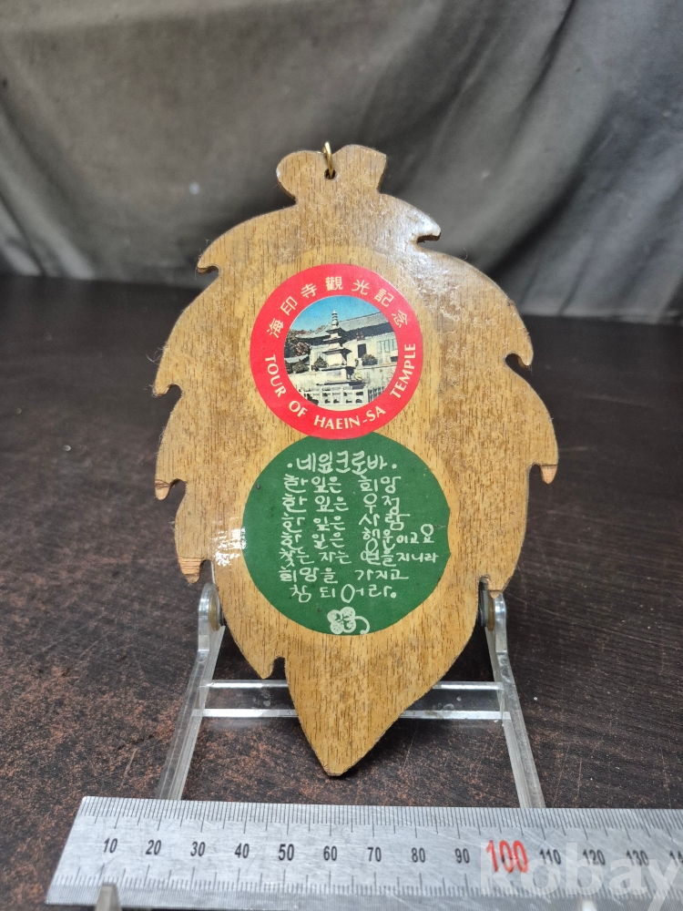 1975년 해인사 수학여행 관광기념 원목합판으로 만든 작은 소품 형이 동생에게 주는 선물 19*11*0.5