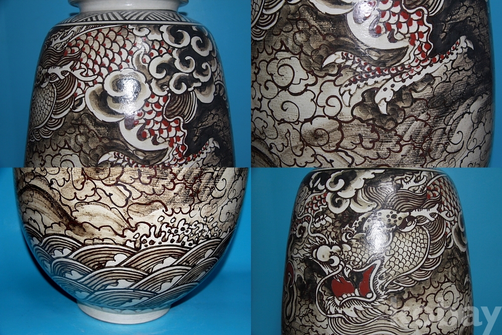 분청사기 의 대가이신 故 [청담 한창문] 선생님의 초대형 운.용문 호 입니다.