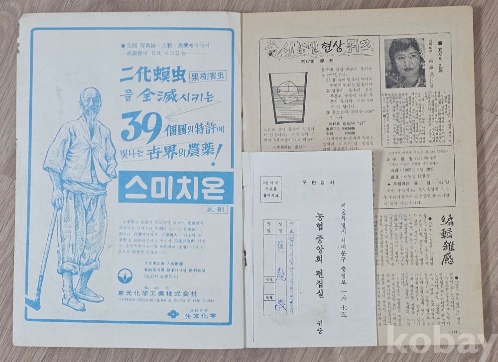 1965년 9월호 새농민 잡지 - 표지 모델 영화배우 고은아 -