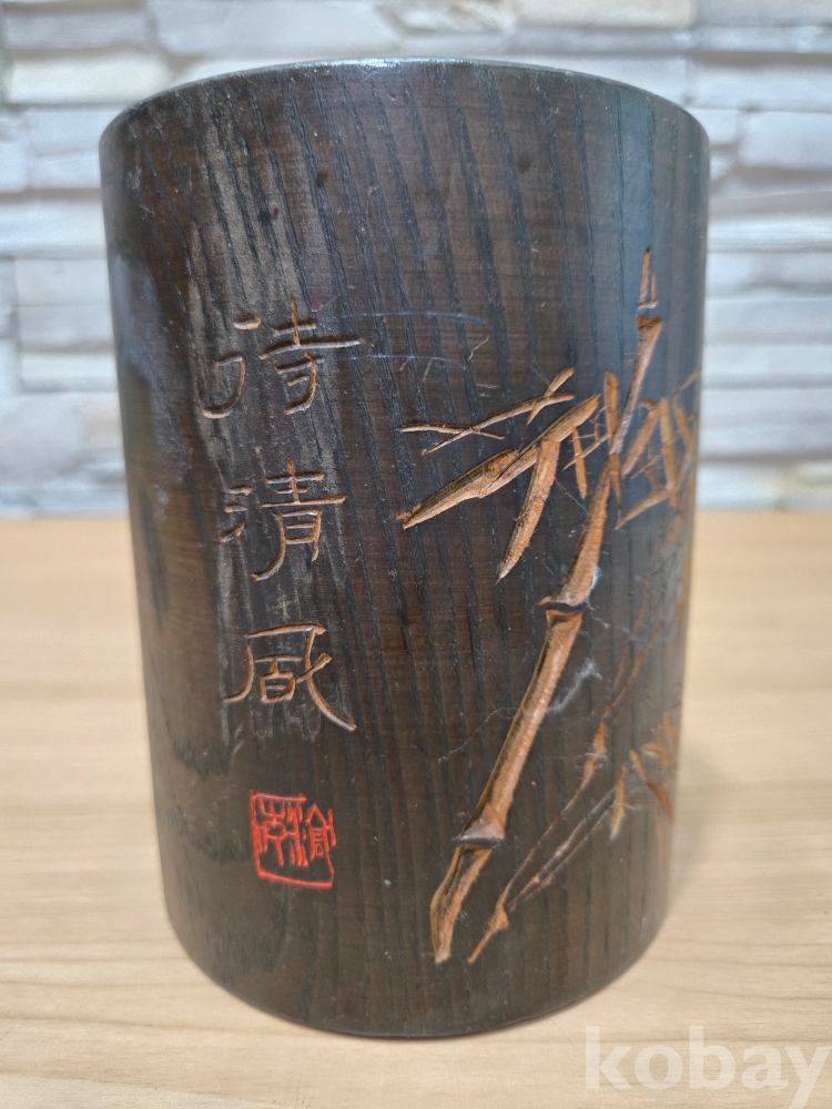 대나무를 음각으로 표현한 나무 필통 입니다.